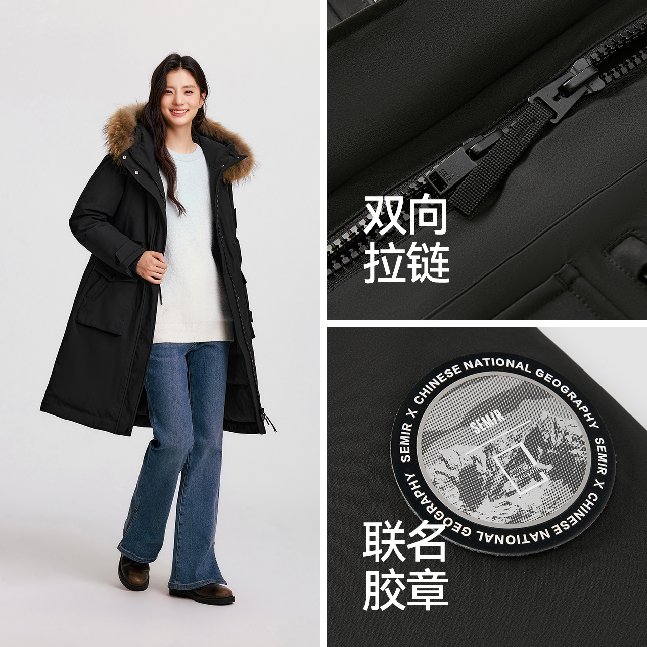 90绒子三防防风 发热长款 鹅绒 森马中国国家地理系列羽绒服女冬季