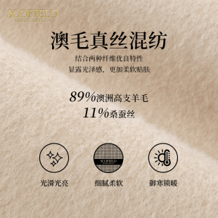 Scofield女装 桑蚕丝 不对称英伦设计感大衣 澳毛