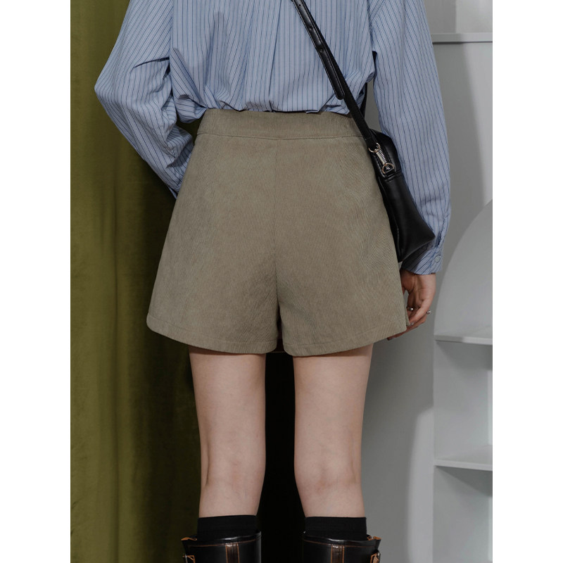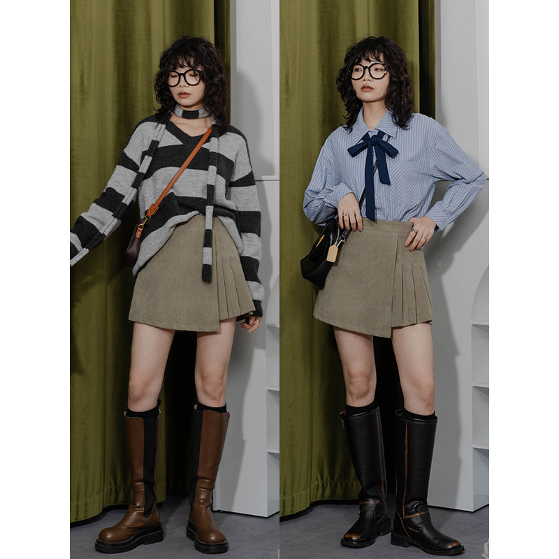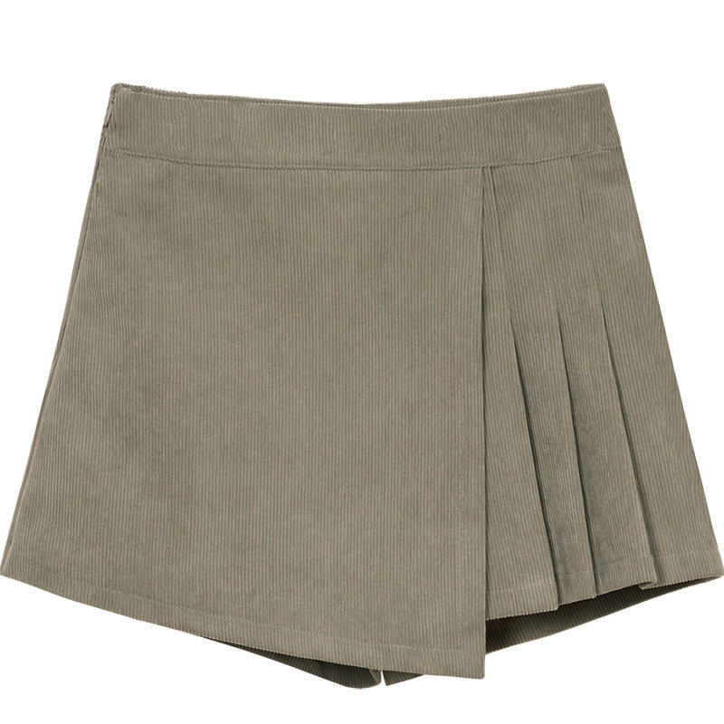 不对称灯芯绒裙裤 女设计感复古高腰百褶裙造型条绒A字阔腿短裤
