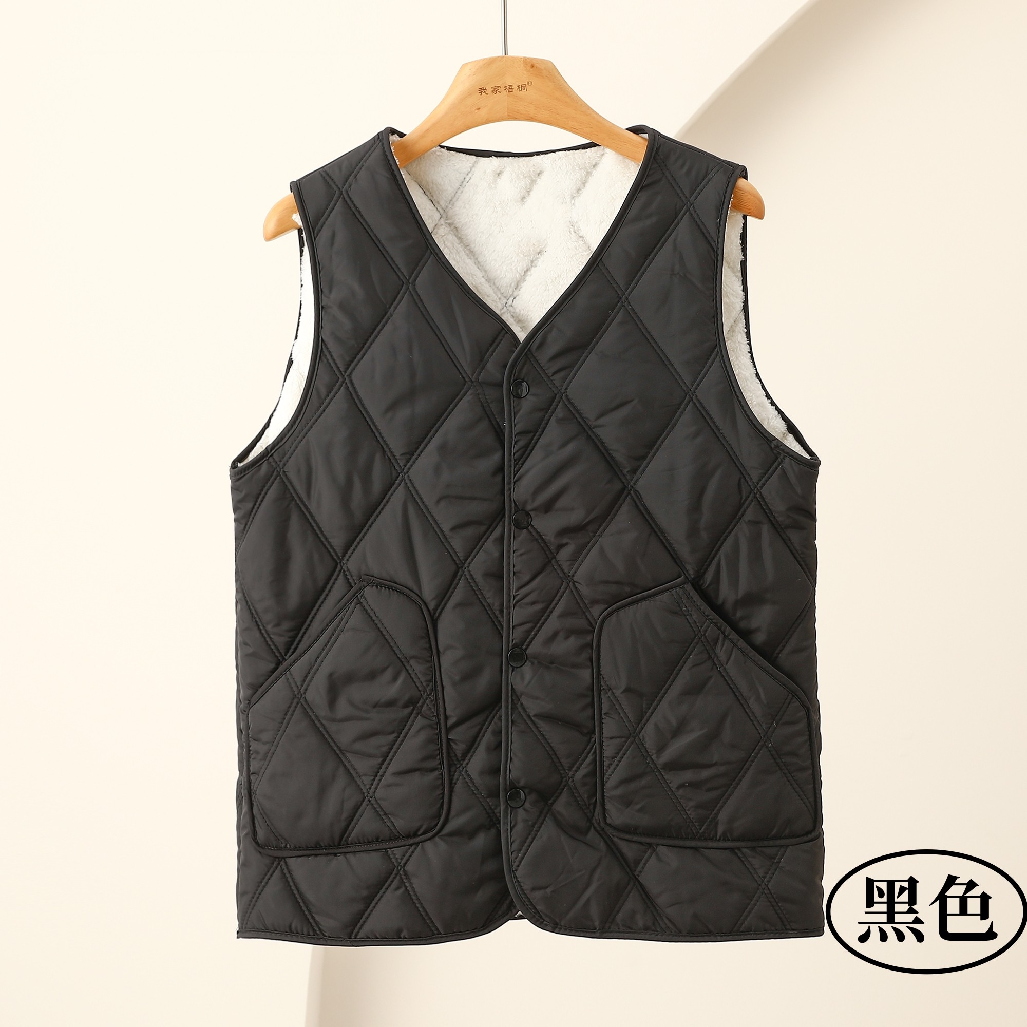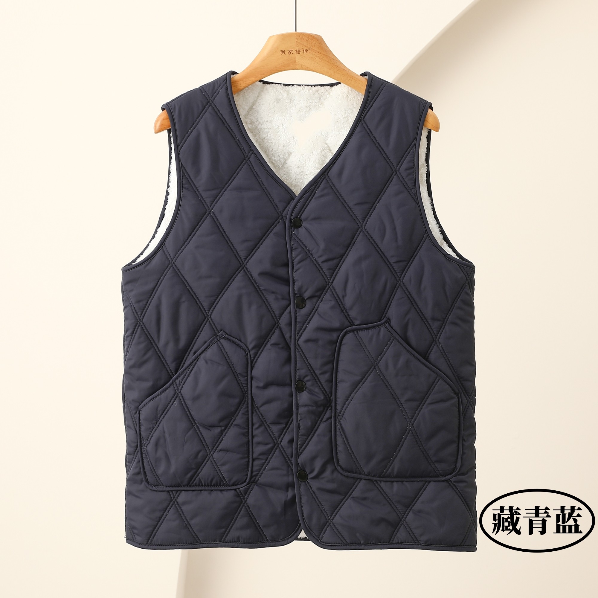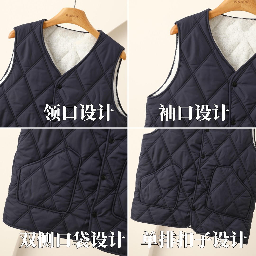 羊羔绒秋冬新款 羽绒棉马甲男保暖背心加绒加厚爸爸坎肩中老年马夹