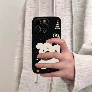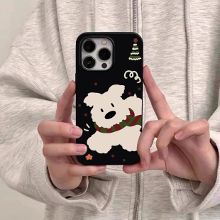韩风ins秋冬围巾白狗手机壳适用苹果17promax新款 11超薄16全包防摔软壳 iphone14亮黑色15pro硅胶13磨砂12女款