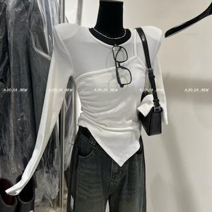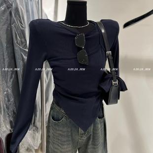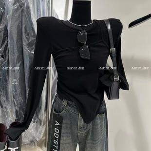 显瘦打底衫 t恤女修身 上衣 纯欲辣妹不规则长袖 东大门2025秋冬新款