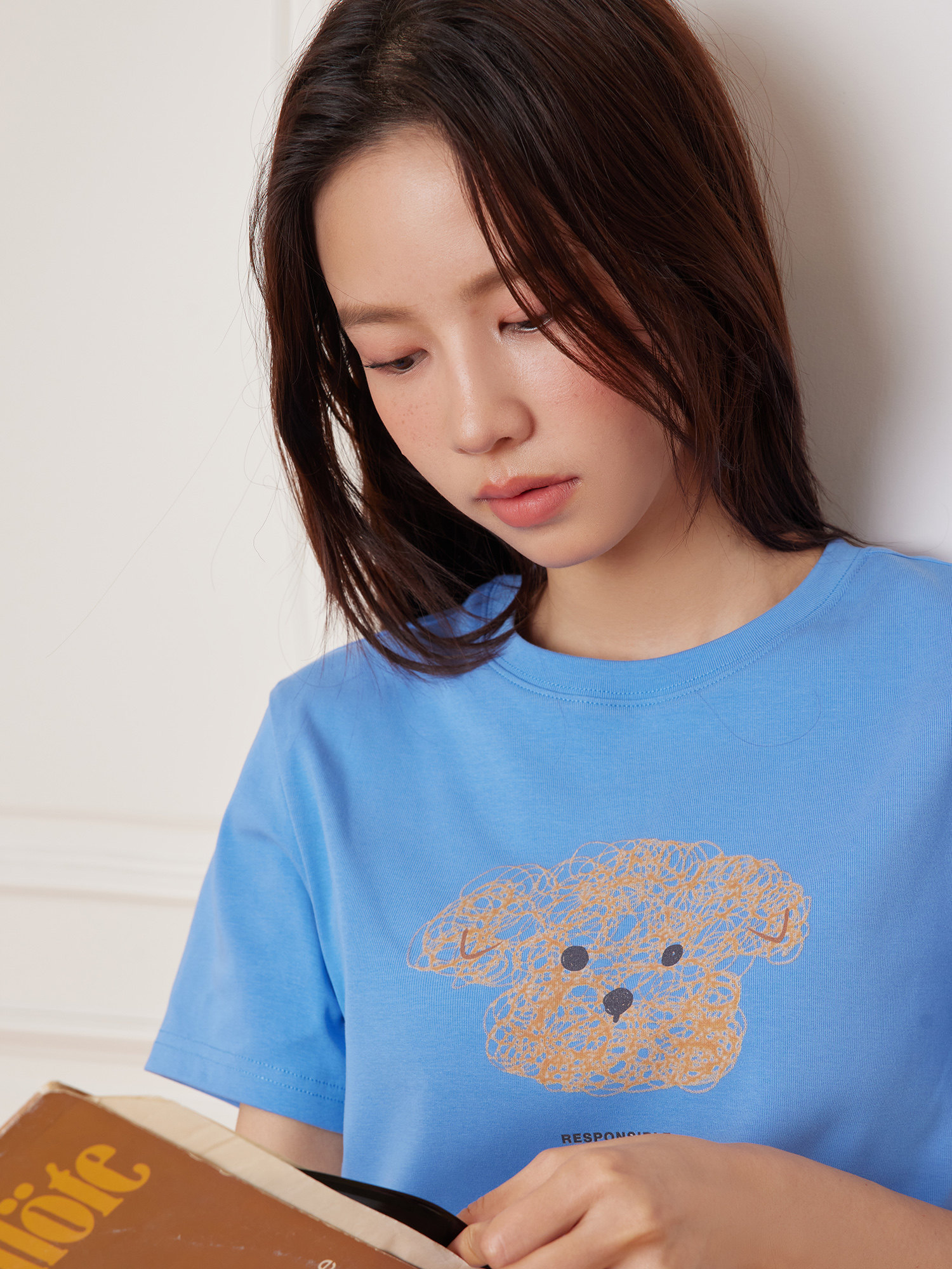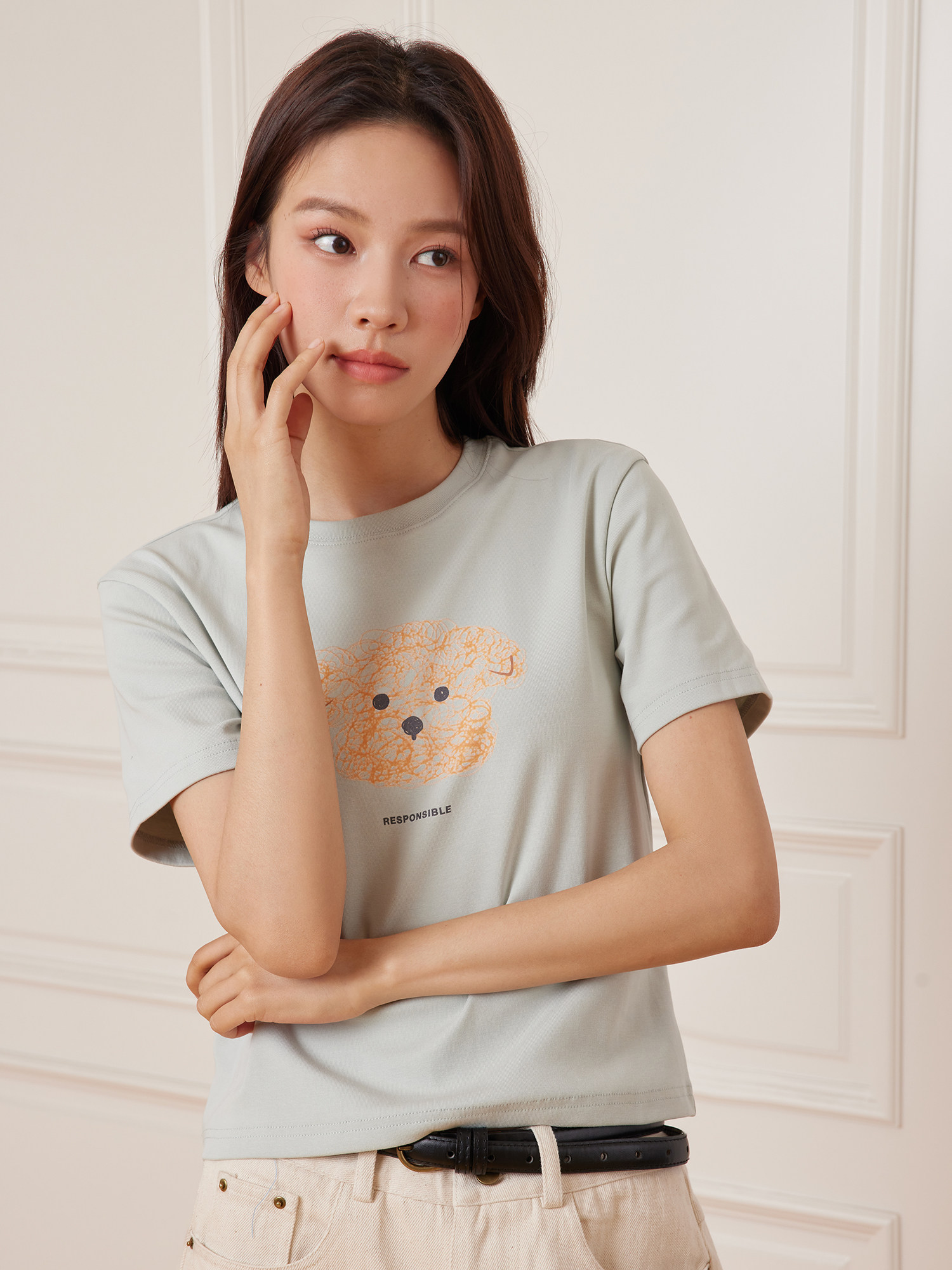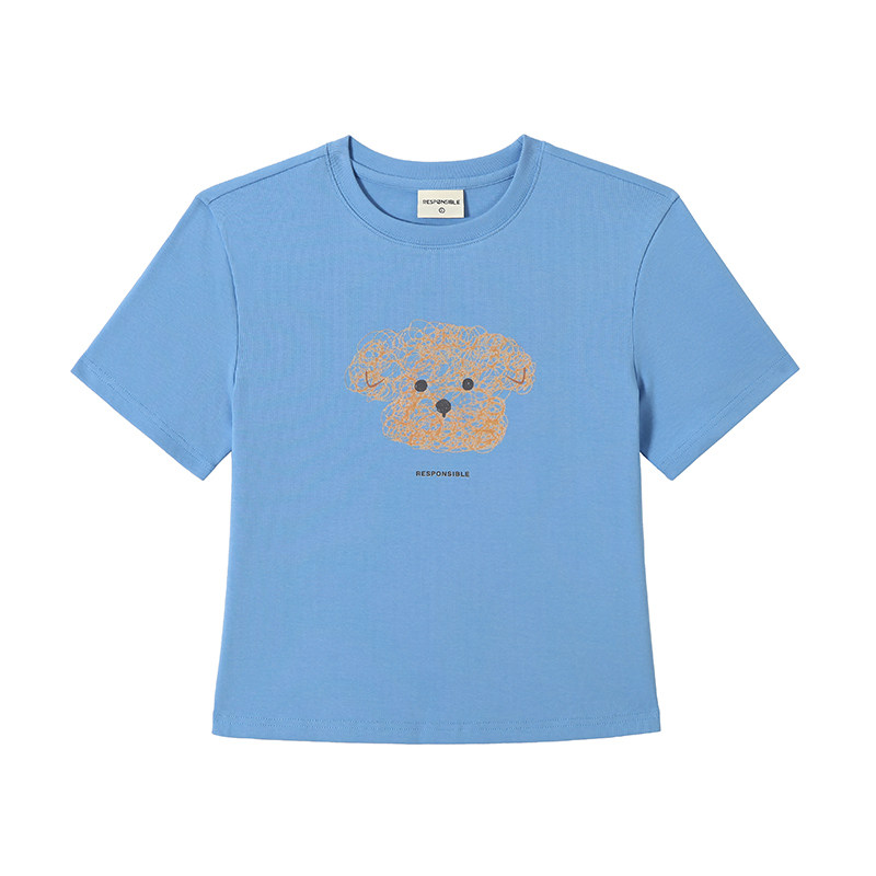 女款 RPB 短袖 显瘦正肩短款 BRAND线条小狗卡通印花百搭圆领T恤修身
