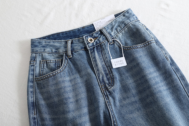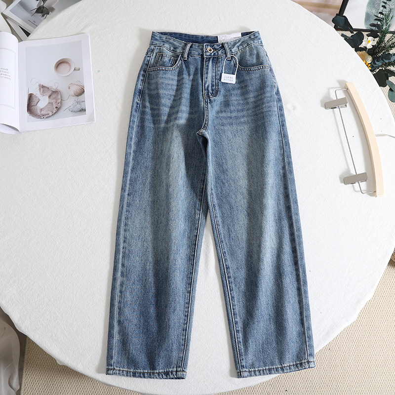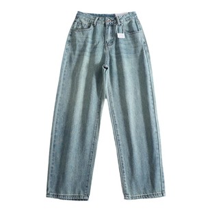 蓝色高腰宽松阔腿休闲百搭牛仔裤 新款 女 2024春装 显瘦显腿直