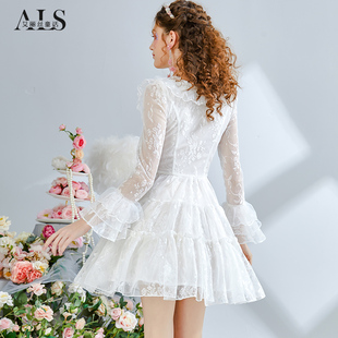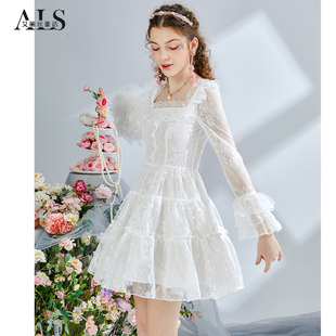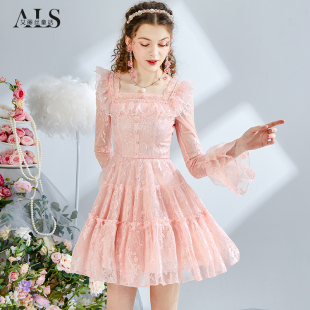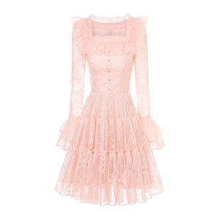 公主裙 超仙白色方领蕾丝连衣裙女粉色刺绣短款 艾丽丝2025秋季 新款