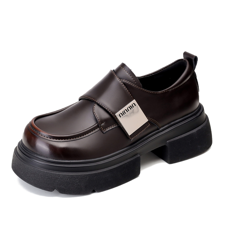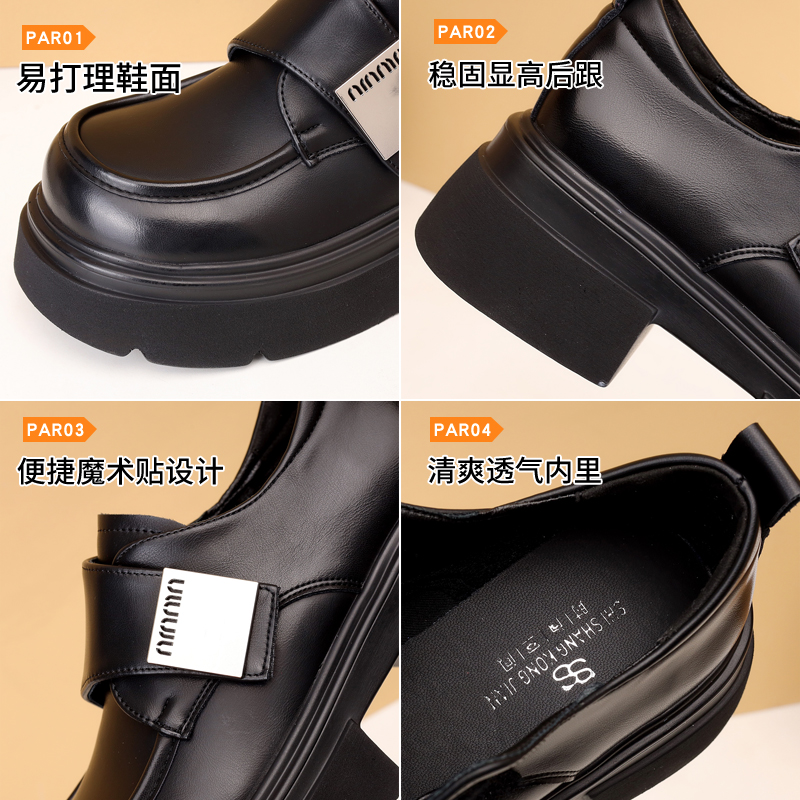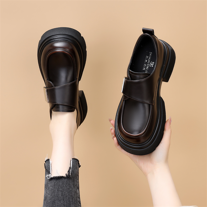 厚底学生百搭魔术贴乐福鞋 女2025新款 洋气金属扣 复古小皮鞋 法式