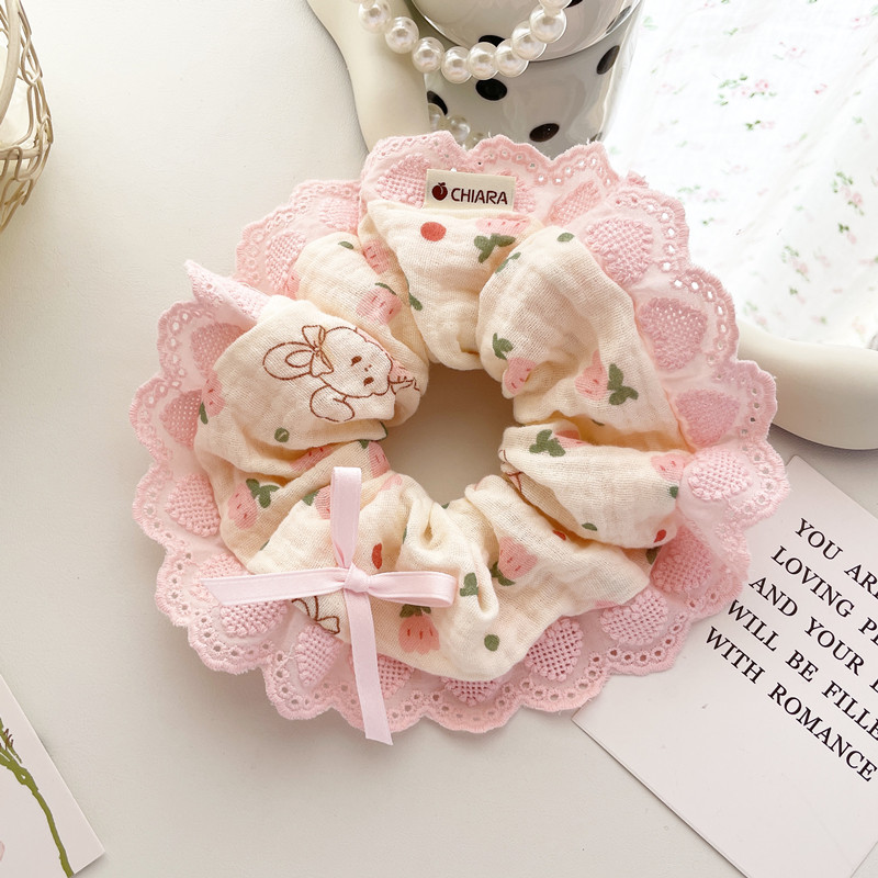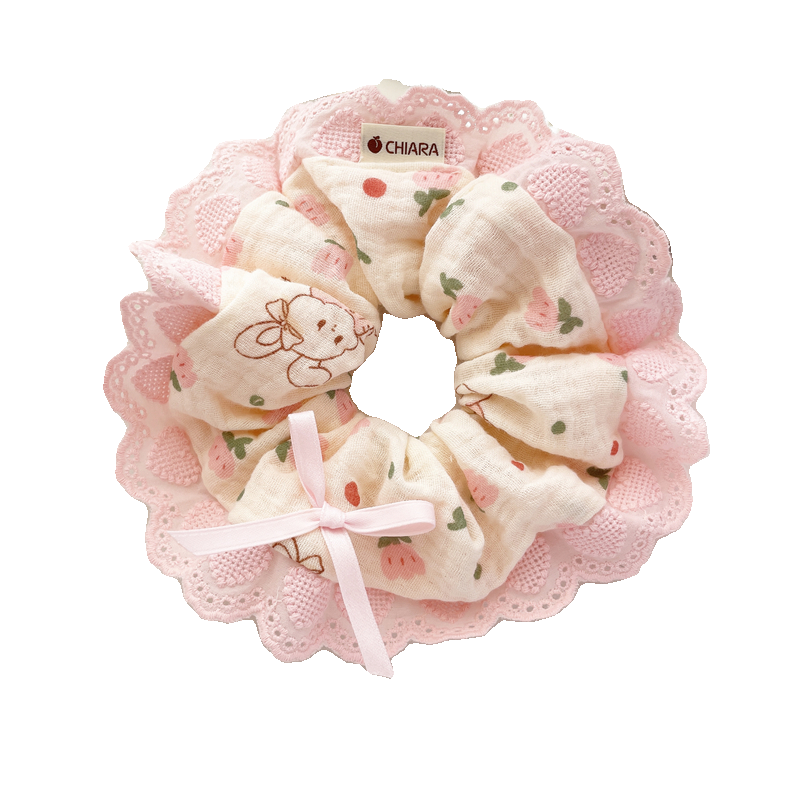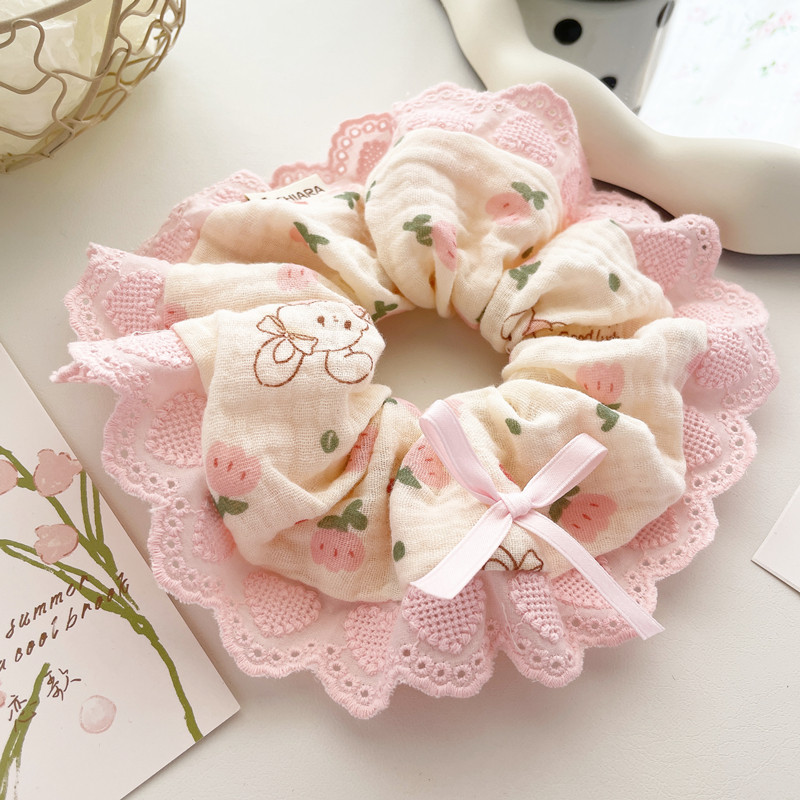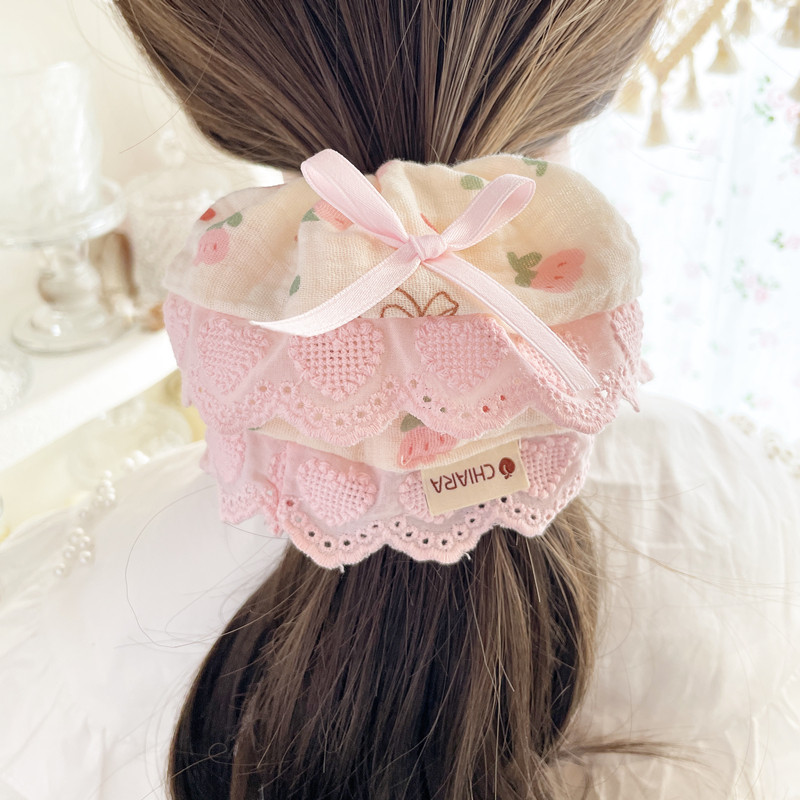 原创手工发饰春日粉色花边发圈大肠圈柔软大号发绳盘发丸子头饰女