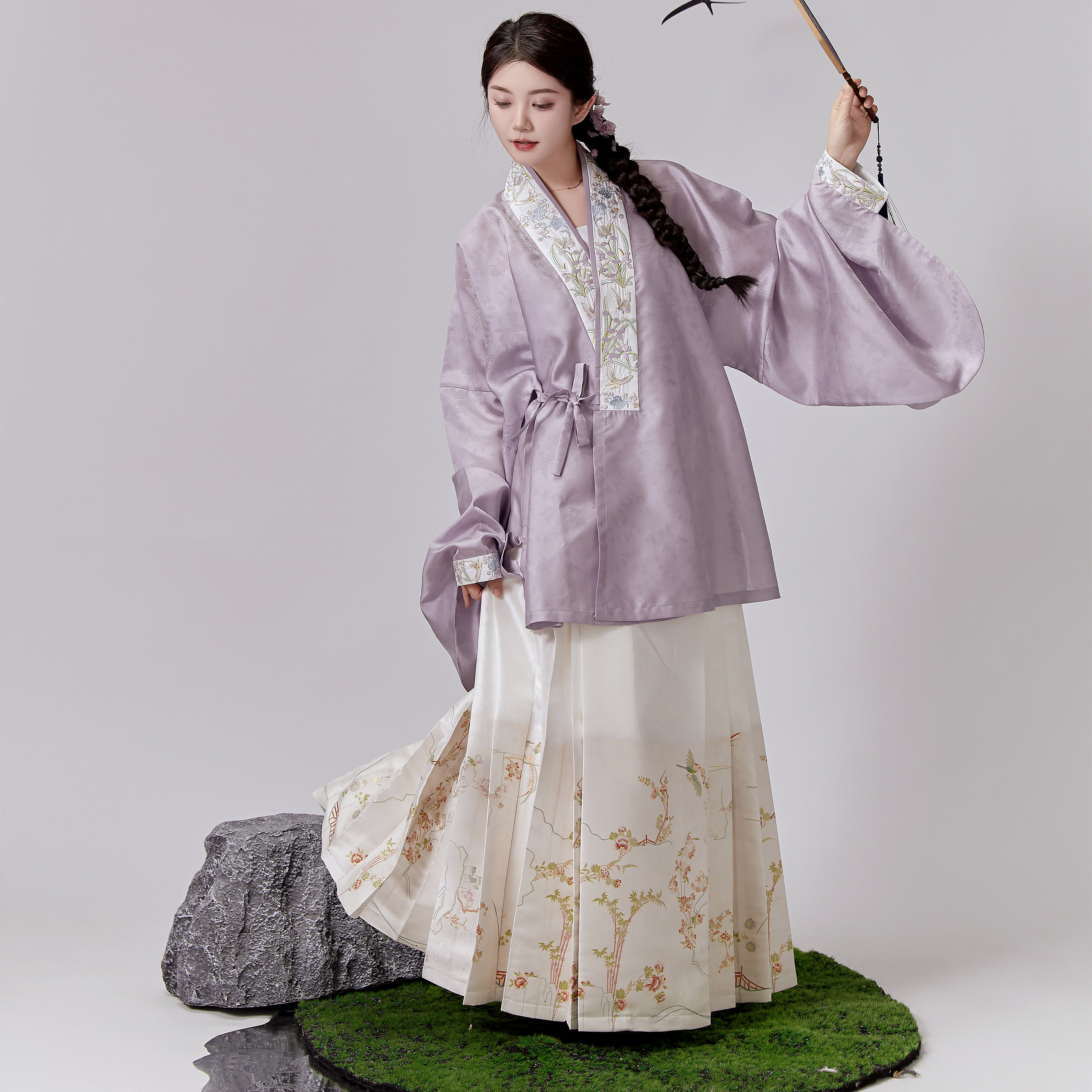 谜阿凰仿花罗褶裙汉服半身裙女小个子春夏改良国风日常百搭汉元 素