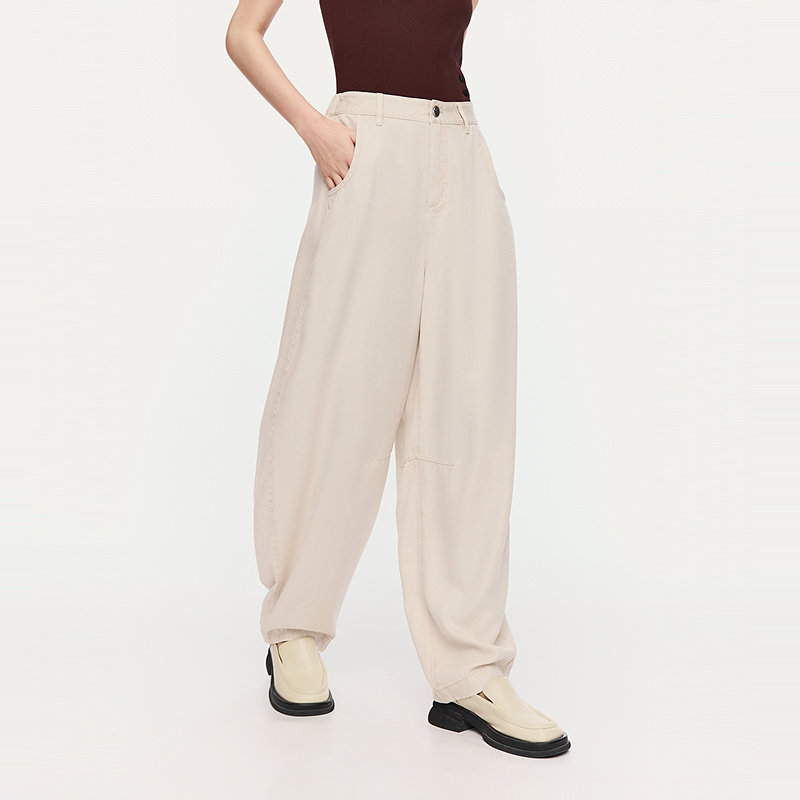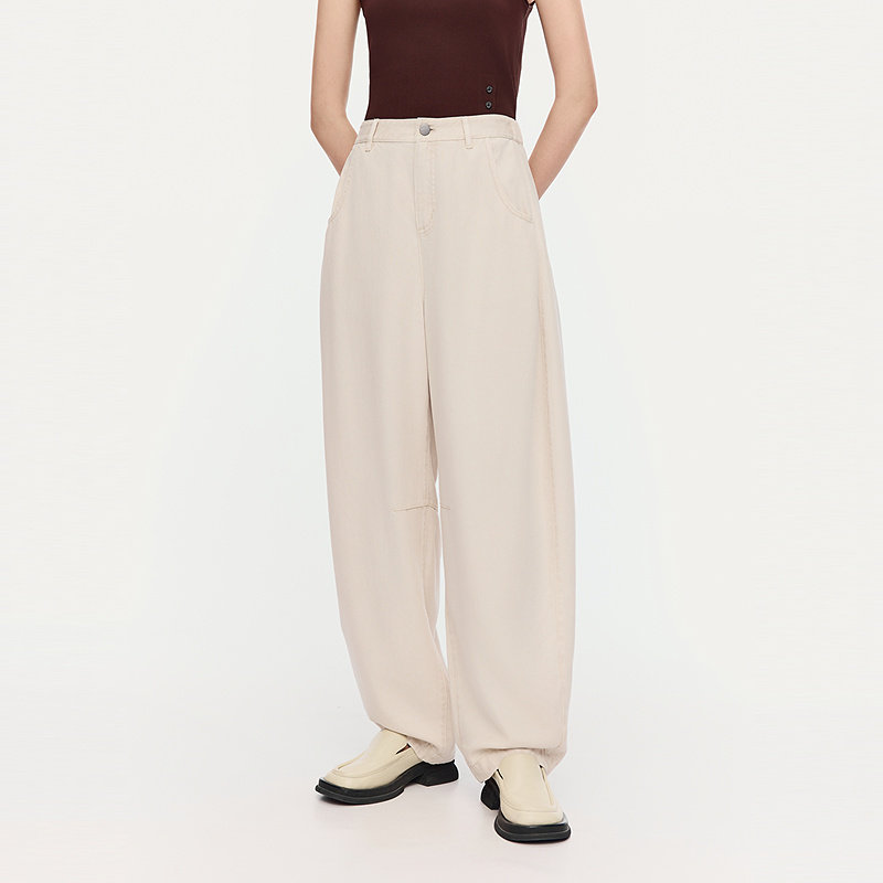 通勤休闲白色长裤 宽松斜纹牛仔气球裤 AUM噢姆夏季 女 商场同款