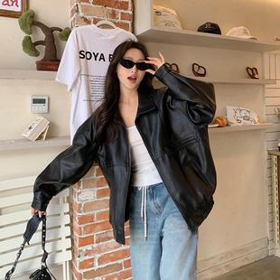 黑色美式 高级感气质宽松机车皮夹克皮衣 复古pu皮外套女春秋新款