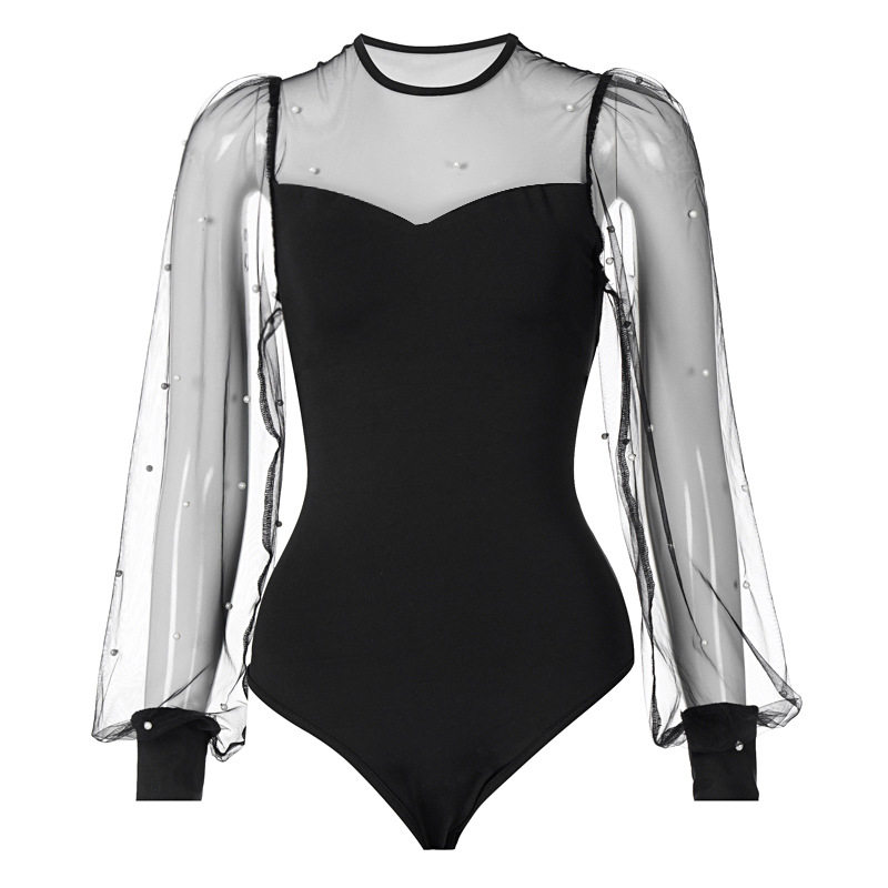 Sleeve Bodysuit Women Mesh One Long Birthday Piece Lanter