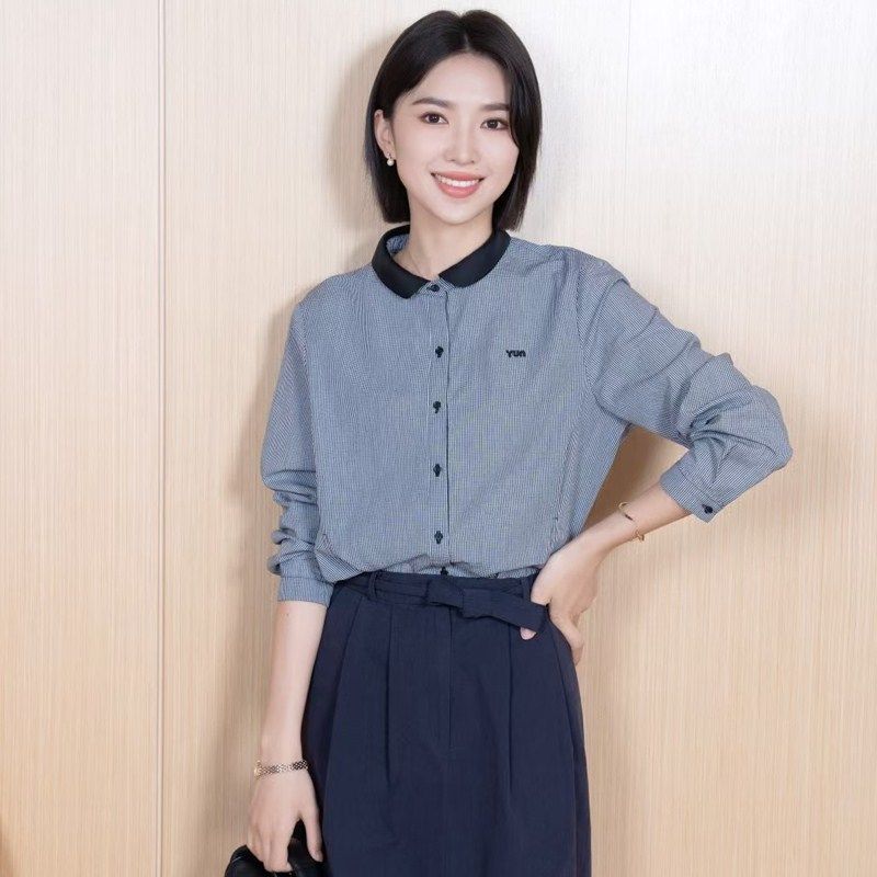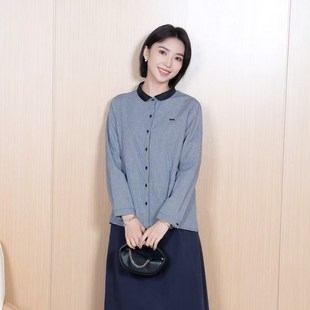 四季 衬衫 叠搭 百搭条纹无袖 叠穿背心翻领衬衣显瘦 秋冬新款 官方