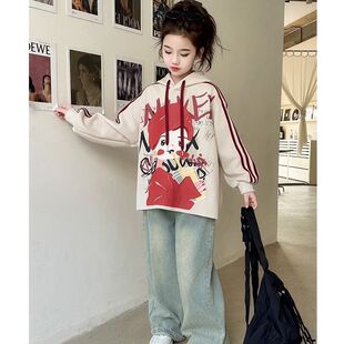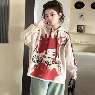 中大童韩版 儿童休闲宽松春秋季 洋气上衣 春装 女童连帽卫衣2026新款