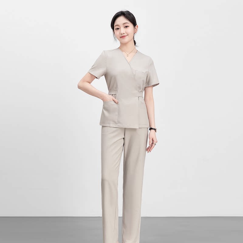 美容师工作服女高端美容院皮肤管理师工服美容SPA藏蓝浅灰美容服