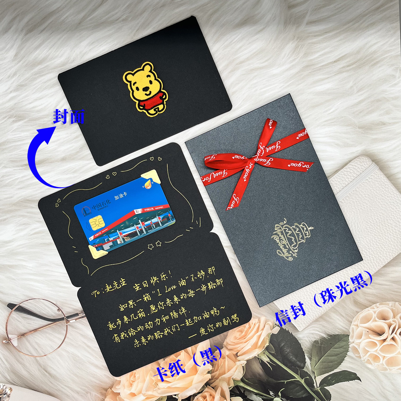加油卡贺卡定制信封包装 代手写送男友中国石化生日贺卡高级感老公