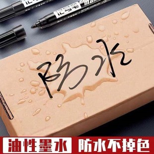 得力记号笔黑色防水防油不掉色油性大头笔签字笔工地马克笔勾线笔美术专用小学生红色蓝色快递儿童水笔墨水粗