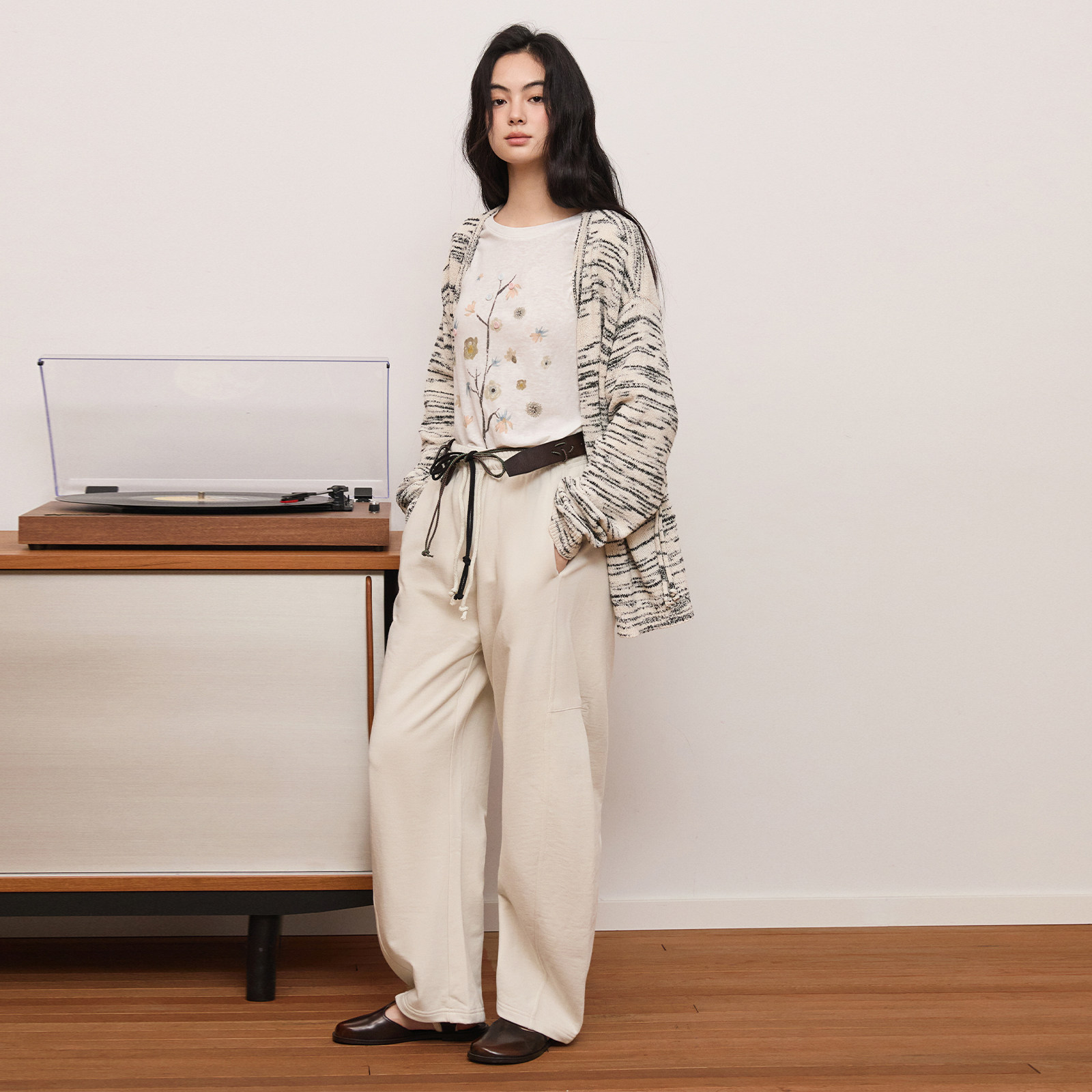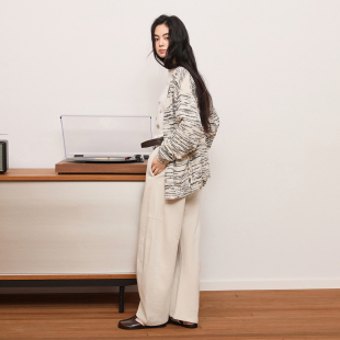 宽松通勤百搭休闲裤 wana 韩版 2025早春新款 try纯棉灰杏色弯刀长裤