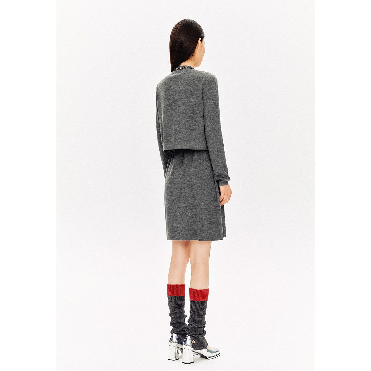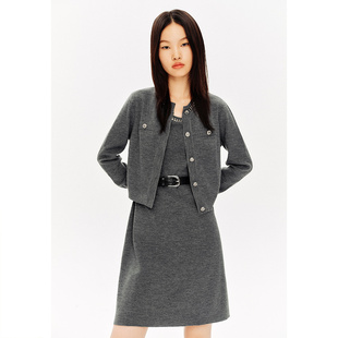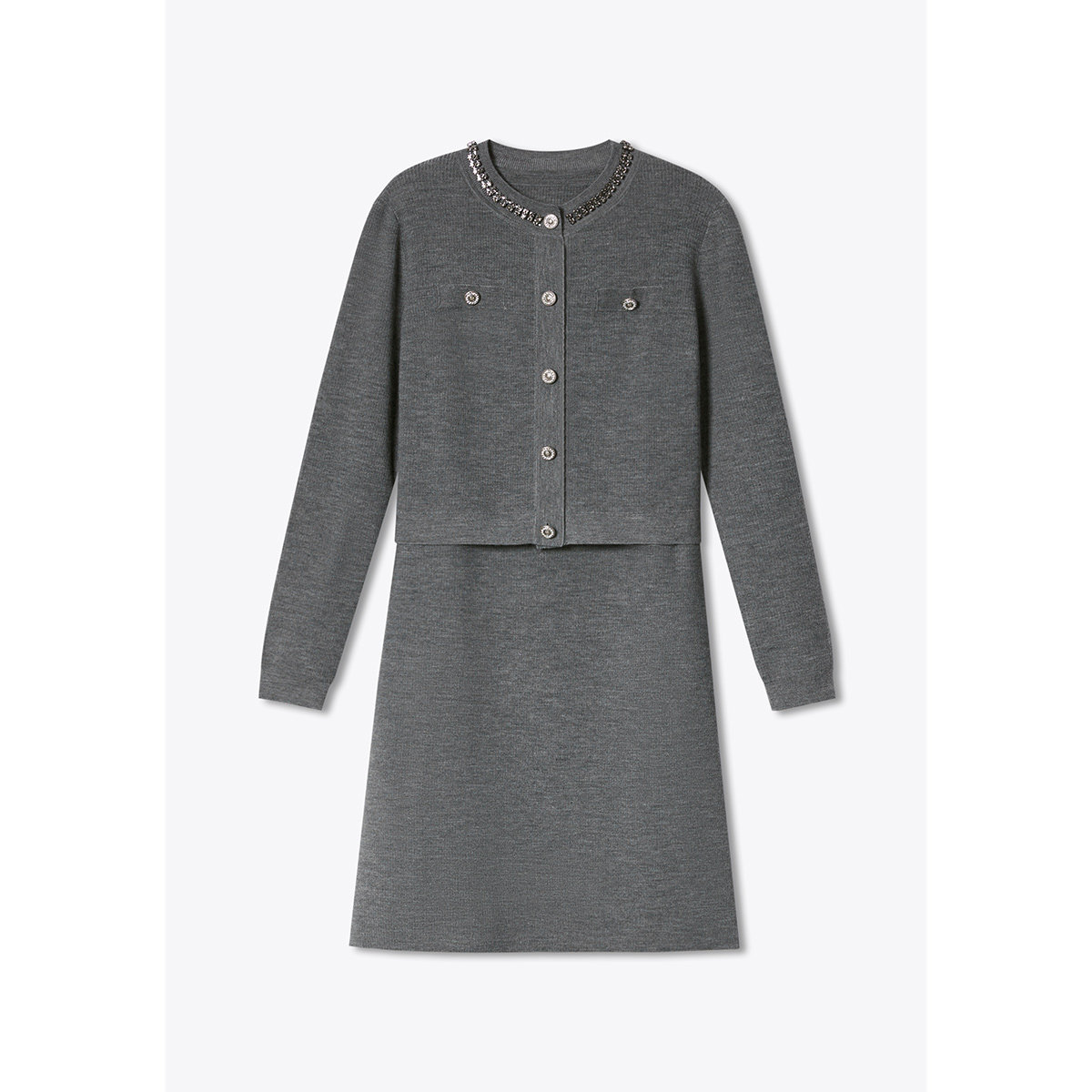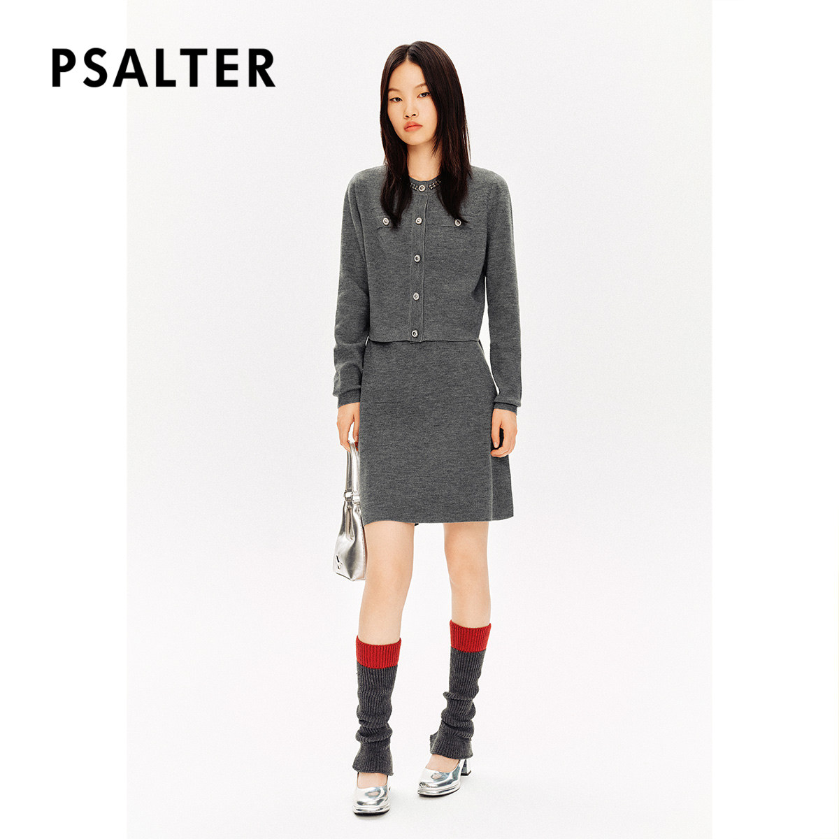 PSALTER诗篇羊毛圆领钉钻针织开衫 背心裙针织两件套冬款