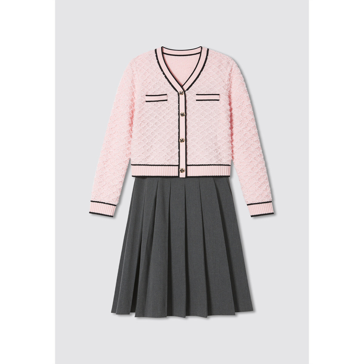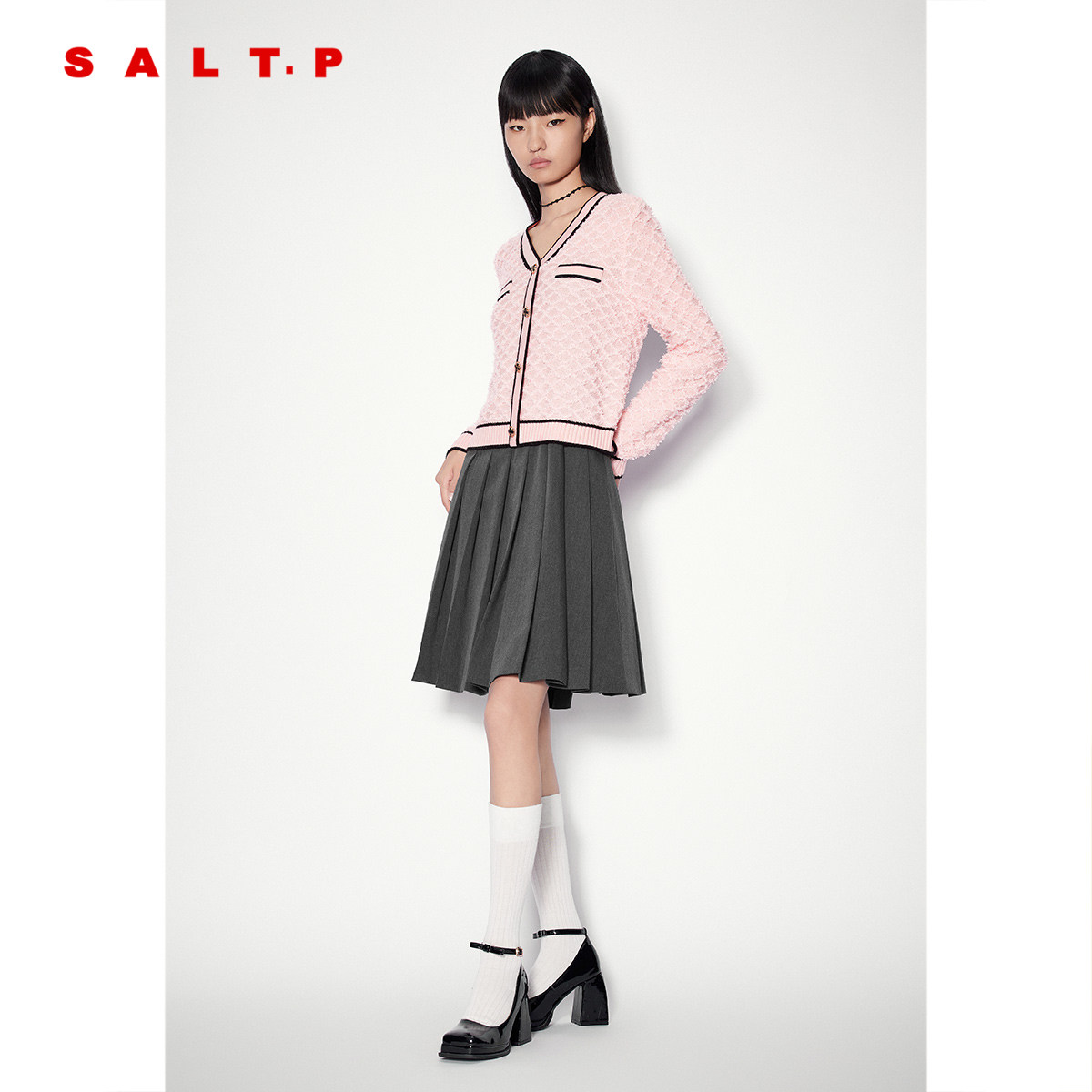 SALT.P可颜肌理感格纹毛针织衫 吊带百褶连衣裙两件套冬款