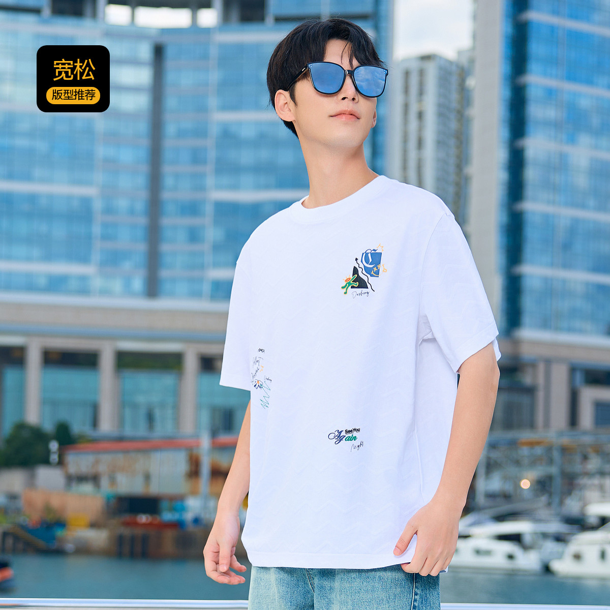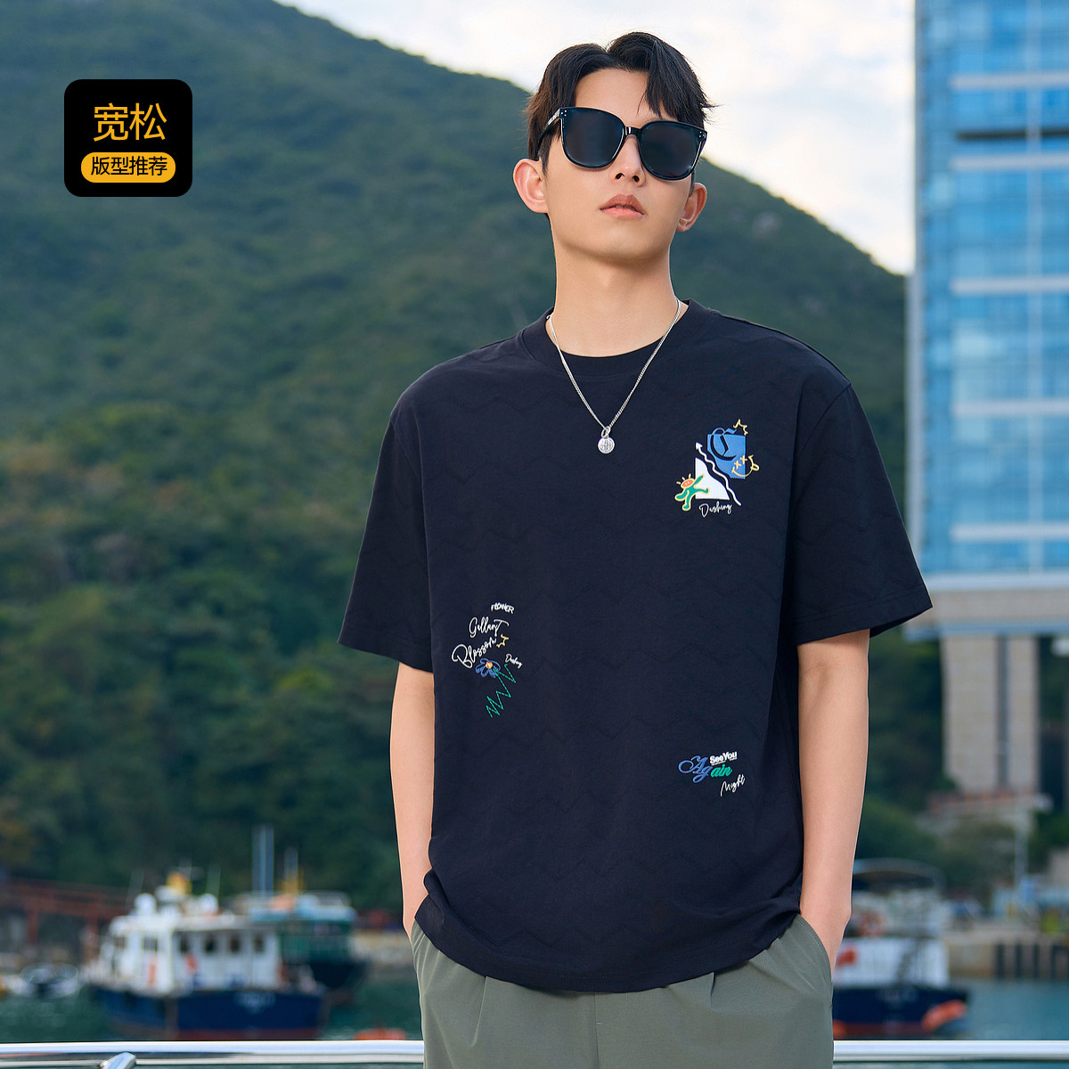 肌理发泡图案 短袖 卡宾 男士 T恤肌理感波浪纹提花质感上衣 夏季