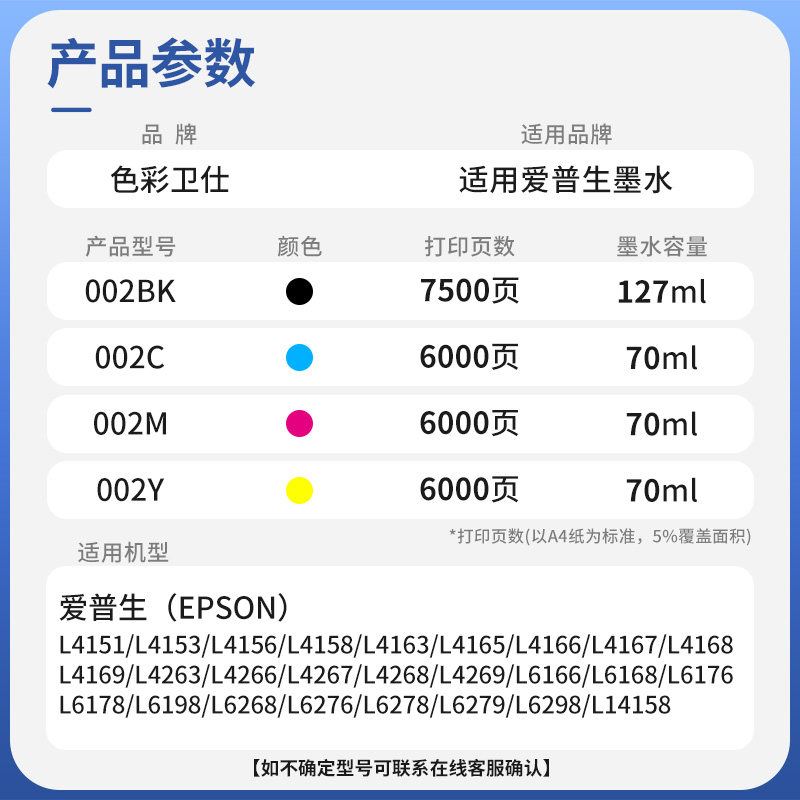 L6276 L6278 L6298 L6198 L14158 L6268 适用爱普生002墨水L6279