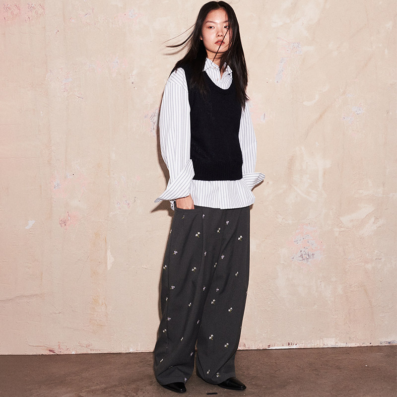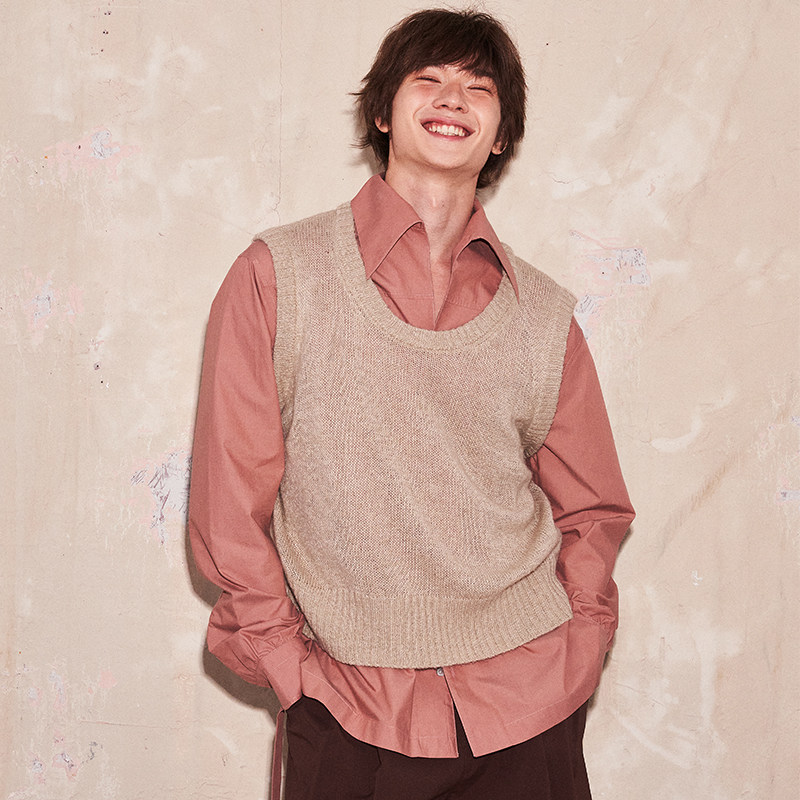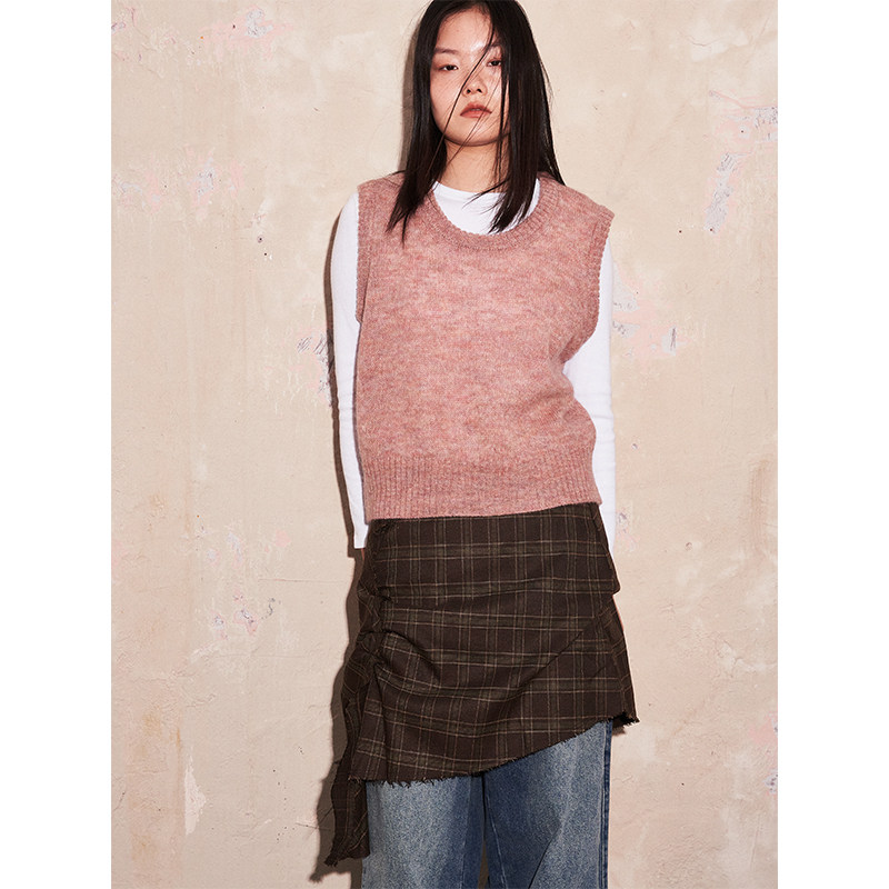 针织宽松直筒背心上衣 U型领马海毛镂空朦胧柔焦感无袖 SAME FLOW