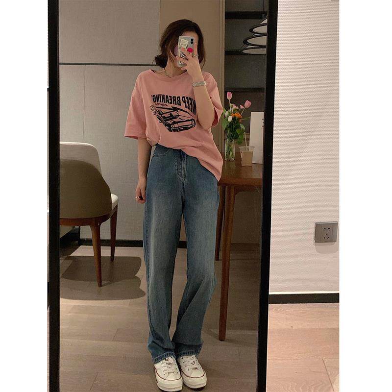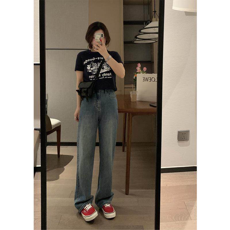 微拖地牛仔裤 显瘦直筒慵懒韩代博主长款 女 这条复古蓝超好看 VEEE