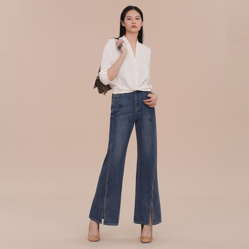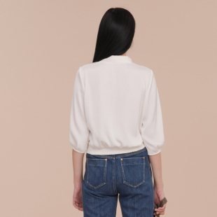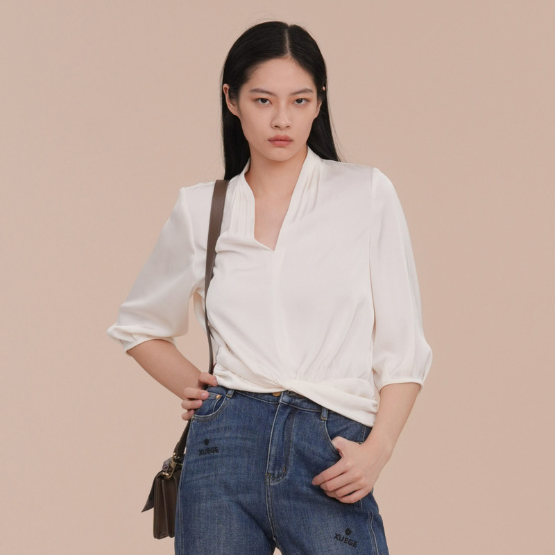 雪歌XK121003A551白色长袖 褶皱设计上衣女装 衬衫 新款 2025春季