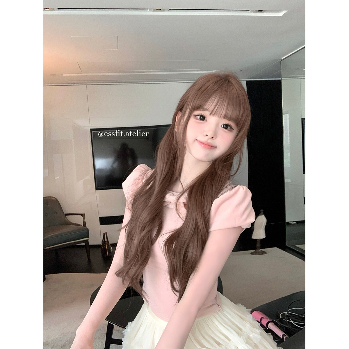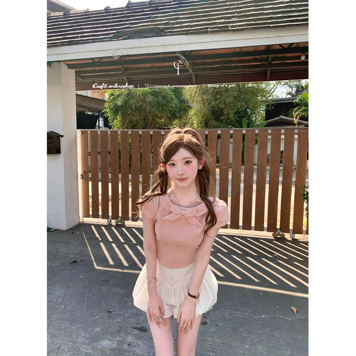 粉色进口天鹅丝绒蝴蝶结少女感短袖 迟伞伞 代官山日记 上衣