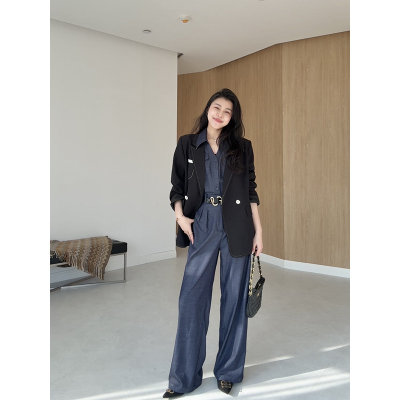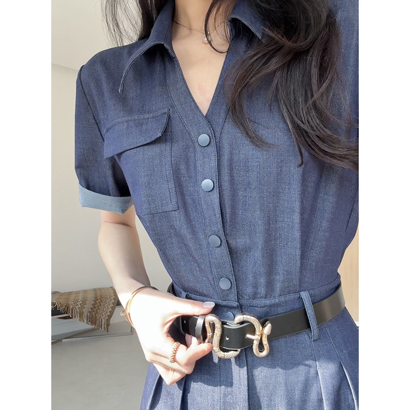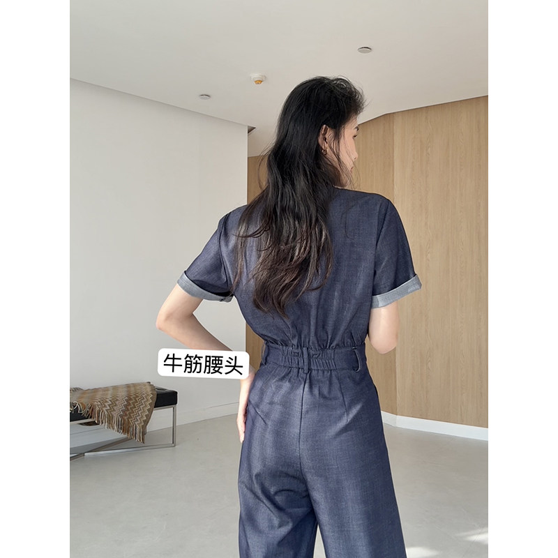 干练通勤百搭高腰线直筒连体裤 气质老钱风夏季 胶片牛仔 张阿星