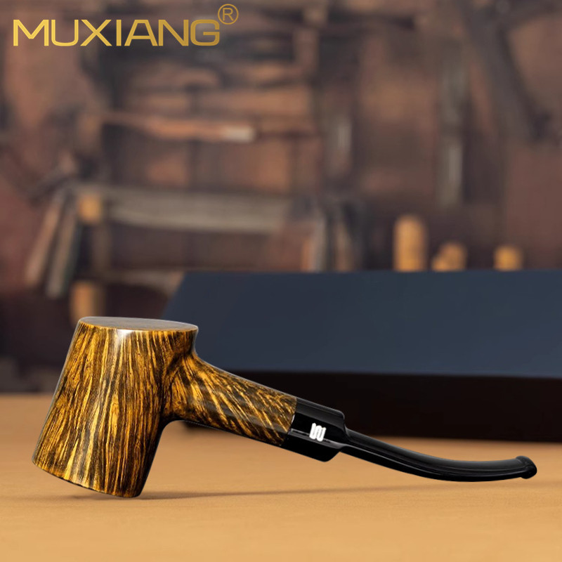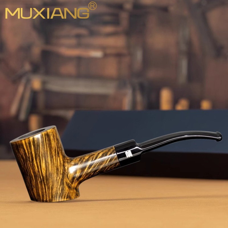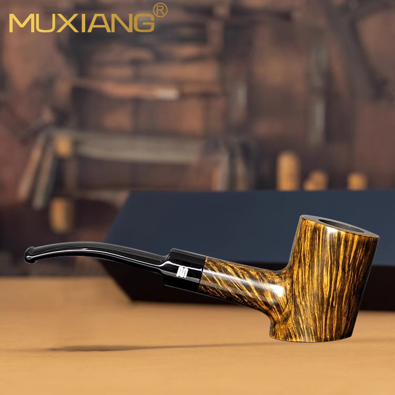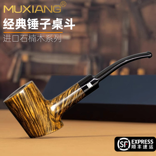 石楠木烟斗男士 弯传统过滤烟具旱烟斗 手工实木平底桌面烟斗老式