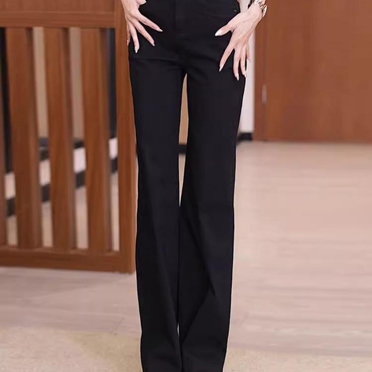 弹力包臀显瘦百搭裤 女秋季 子 双扣直筒微喇牛仔裤 橘子树在哪儿美式
