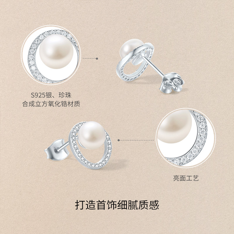 周大生淡水珍珠耳钉925银耳针简约百搭耳饰小灯泡送女友新年礼物