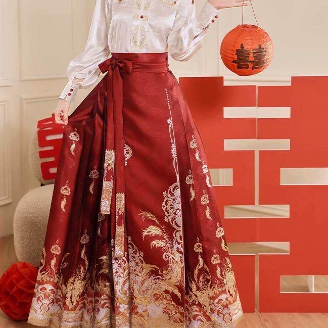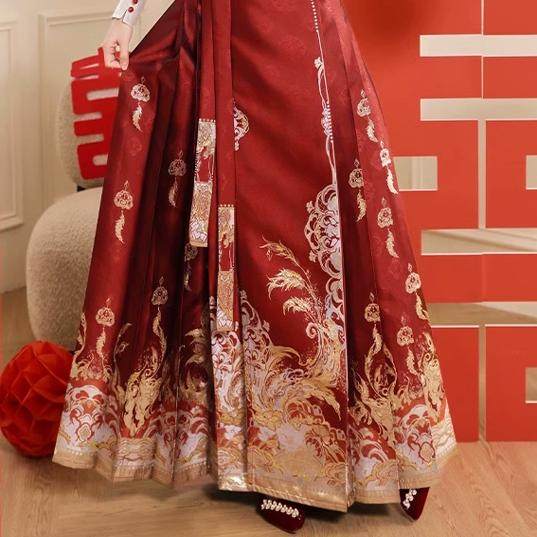 汉服出租新款 女伴娘租赁 原创刺绣印花马面裙云肩敬酒订婚服新中式