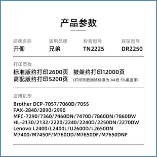 7060D鼓架7470D鼓组件7290打印机HL2240墨盒 DCP7057 开仰适用兄弟TN2225粉盒DR2250硒鼓MFC7360 7860DN