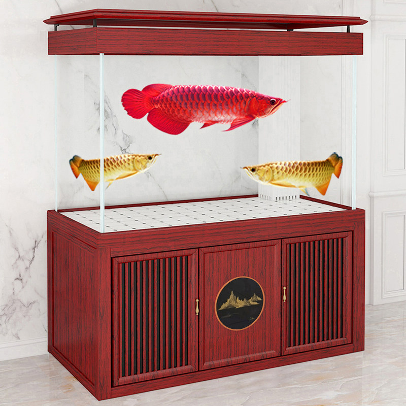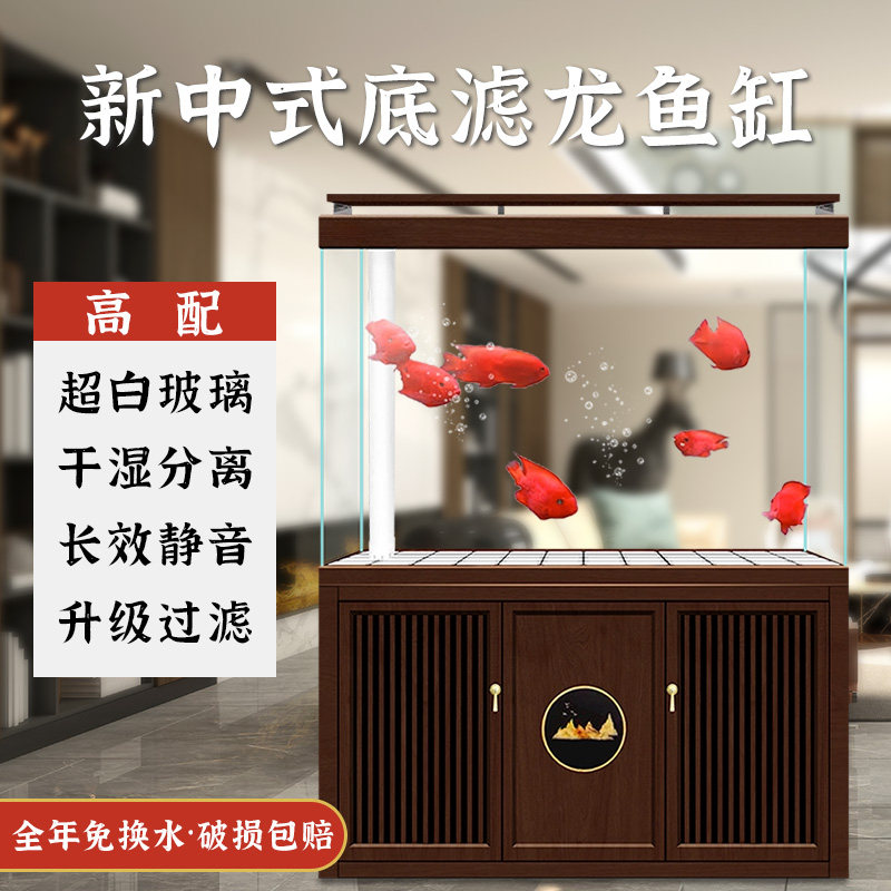 2025新款 屏风超白玻璃底滤大型水族箱免换水客厅龙鱼缸静音 新中式