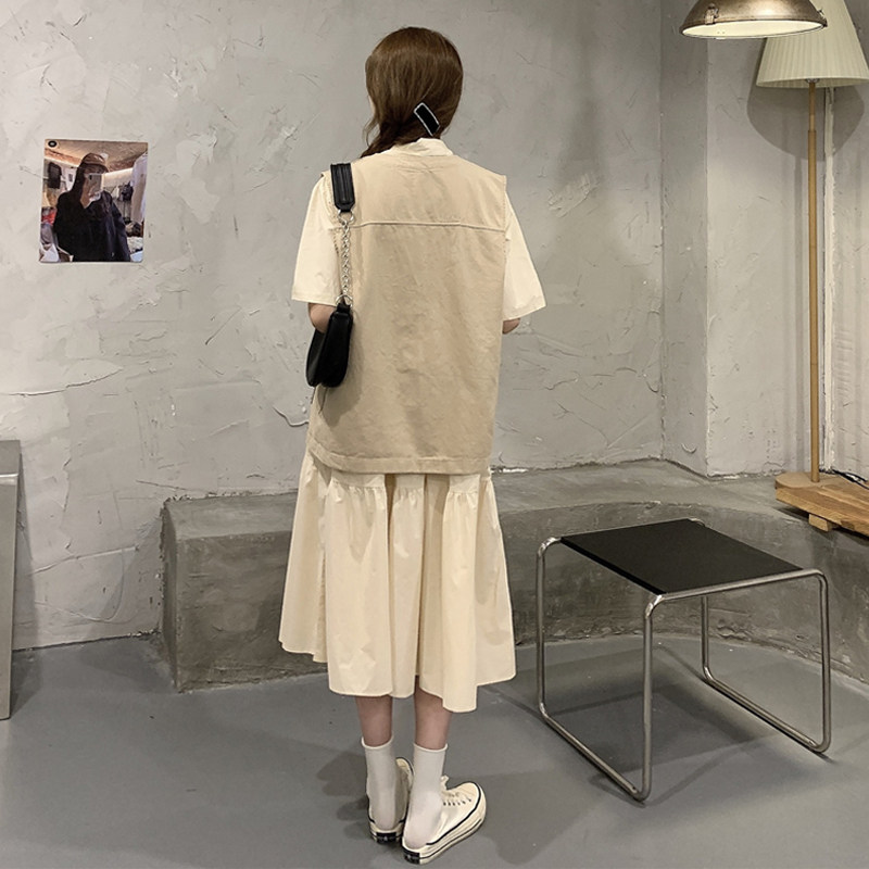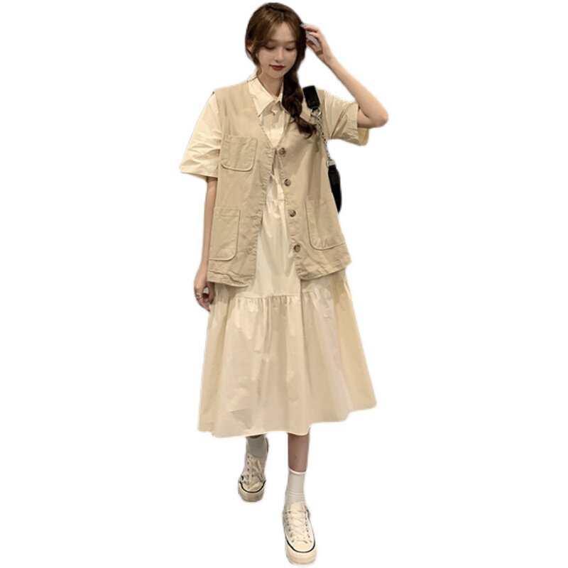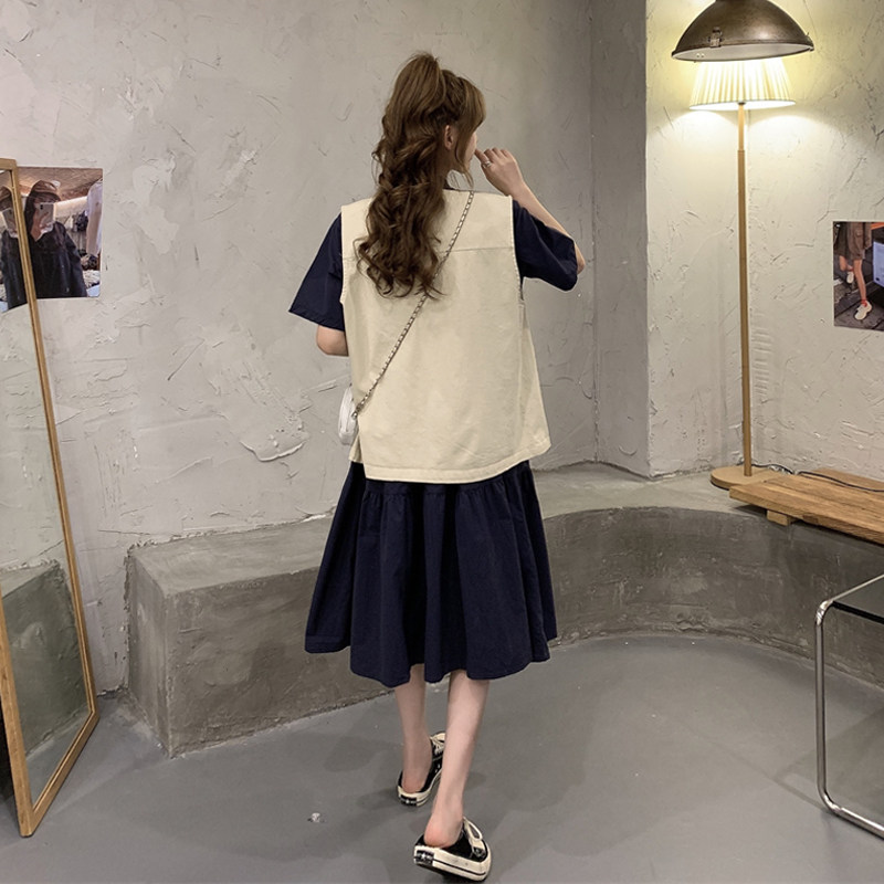 学院风宽松遮肉显瘦连衣裙洋气减龄马甲套装 大码 新款 胖mm春季 女装