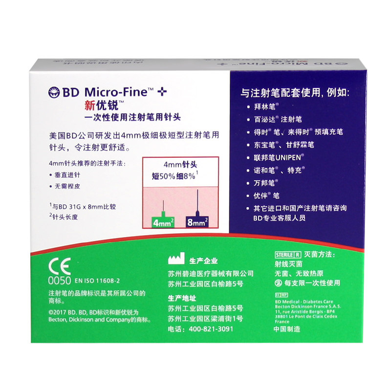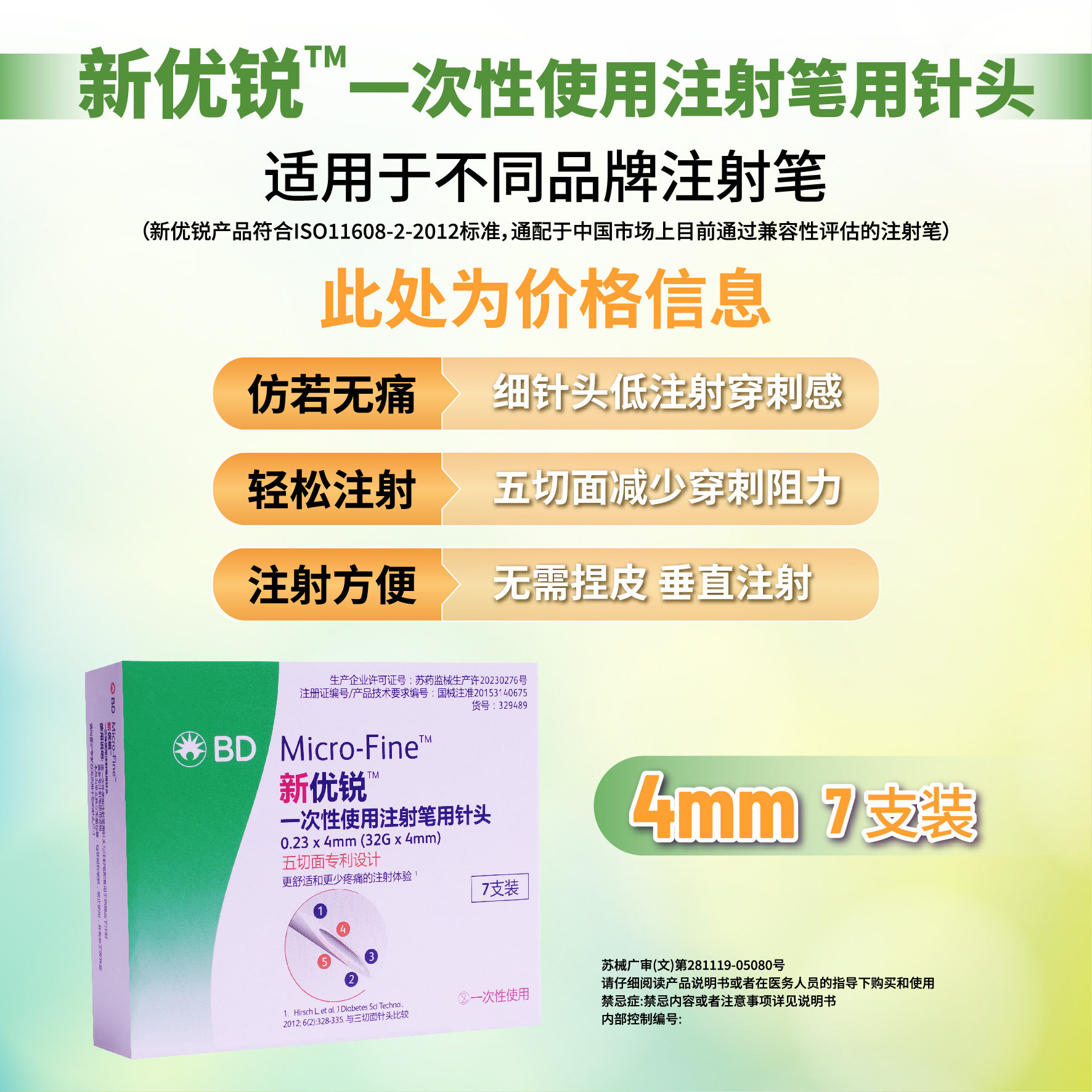 BD新优锐胰岛素针头注射笔一次性0.23针头4mm糖尿病多笔适用140支