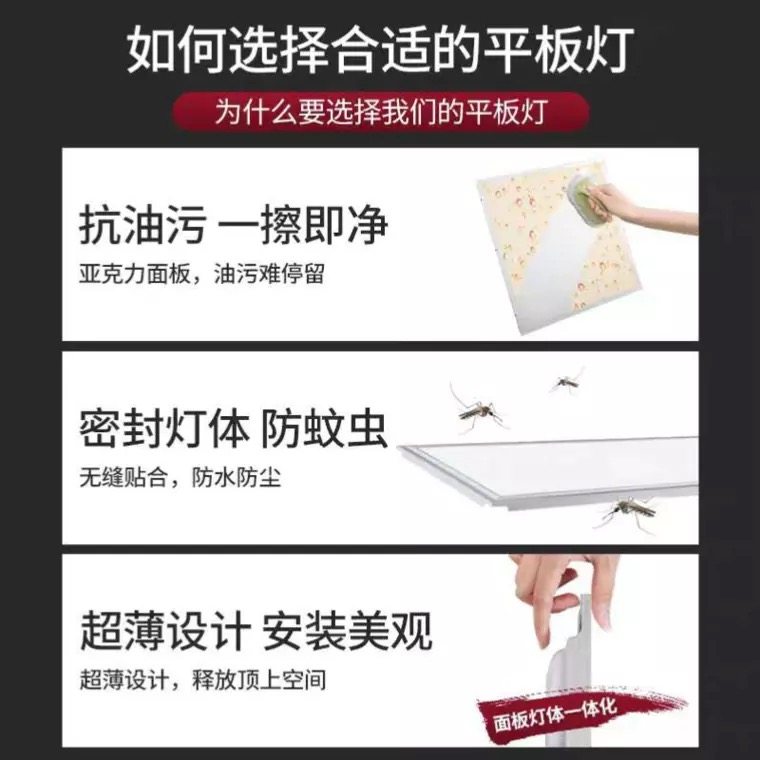 360x360 LED厨房卫生间面板平板灯 720奥华顶上适用集成吊顶嵌入式