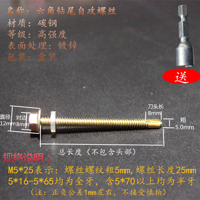 外六角钻尾螺钉彩钢瓦螺钉燕尾螺丝钉自钻自攻钻尾螺丝M5M4.8 包邮