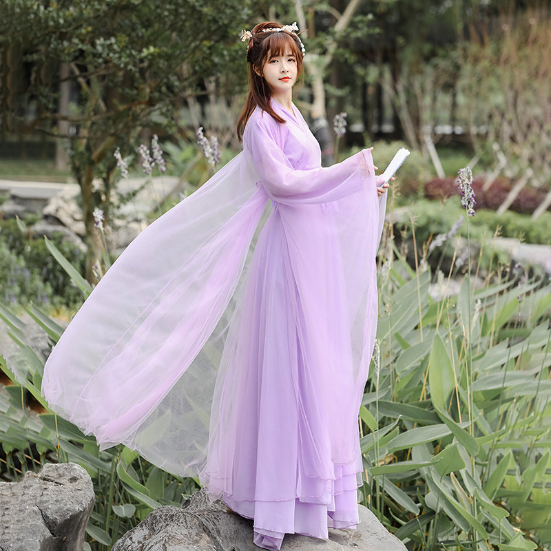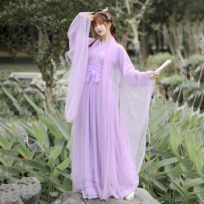 写真中国风广袖 日常改良仙侠装 交领连衣裙 女汉服飘逸超仙套装 古装