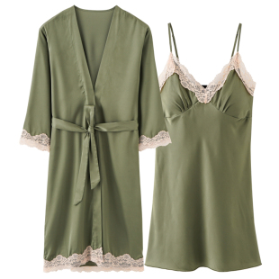 男两件套装 冰丝情侣睡衣女夏季 短袖 薄款 性感吊带裙睡袍2026年新款
