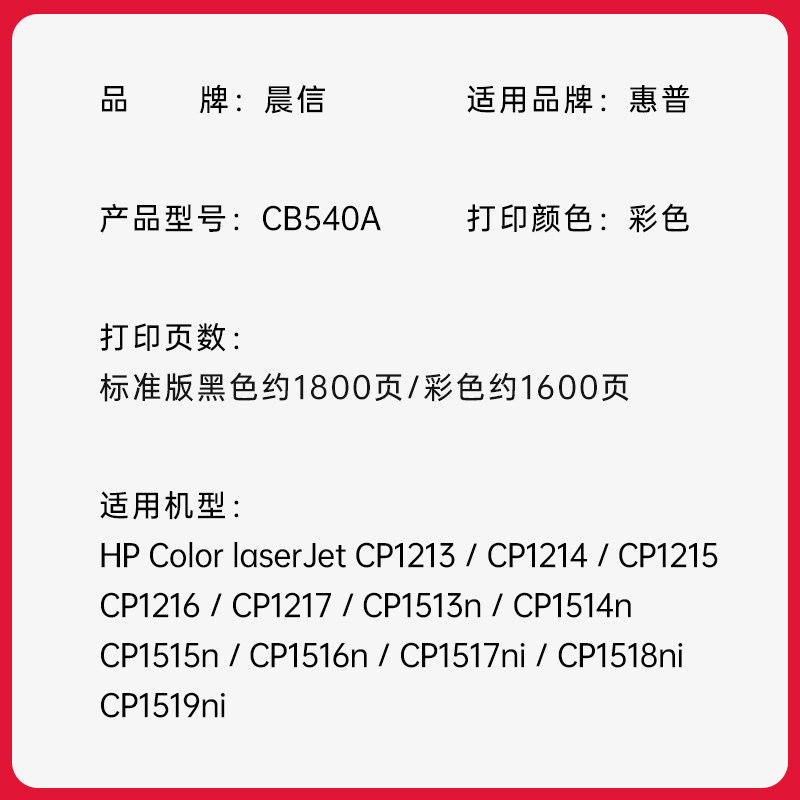 Color CM1312墨盒CB540A打印机易加粉墨粉盒晒鼓HP laserJet 1518粉盒CM1300 适用惠普CP1215硒鼓CP1515