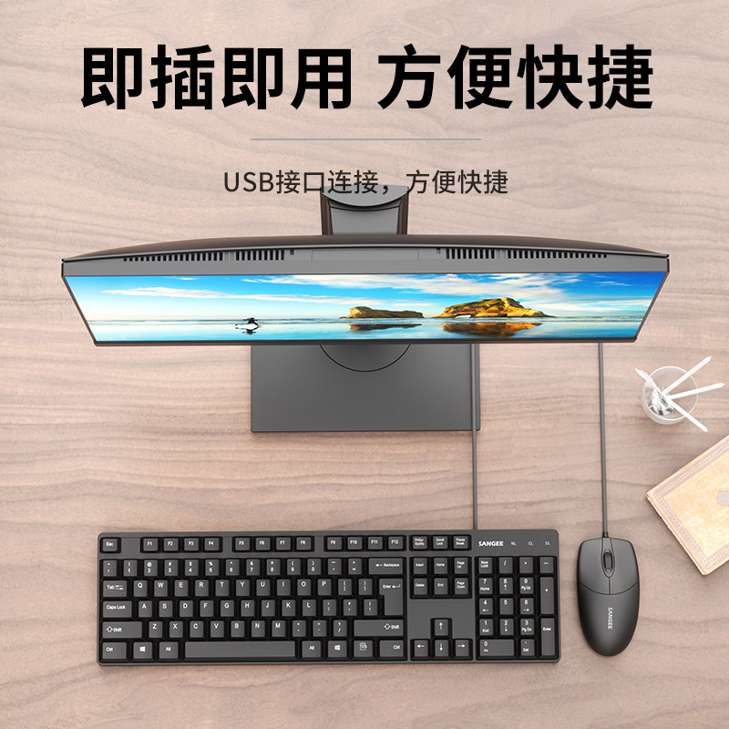 电脑键盘鼠标套装 笔记本办公专用静音无声打字us家用商务 有线台式