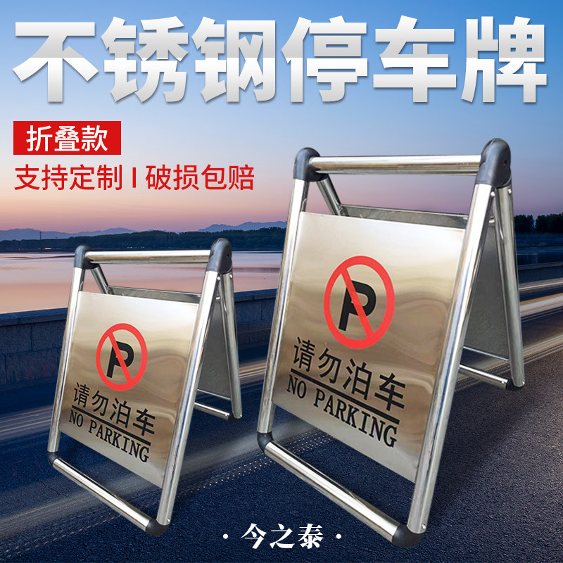 不锈钢停车牌车位请勿泊车告A字牌禁止警示牌专用车位停车桩 订制