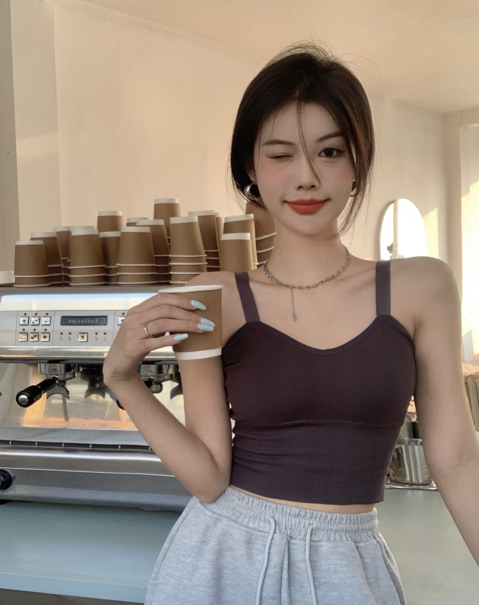 大码 胖mm吊带上衣女夏外穿设计感小众内搭带胸垫美背针织打底背心