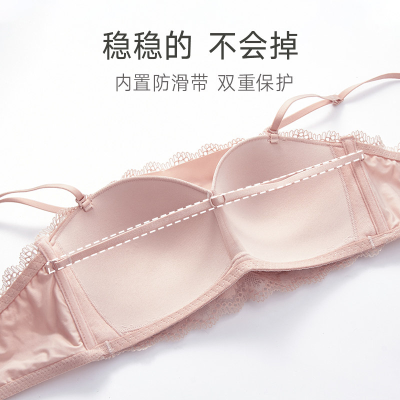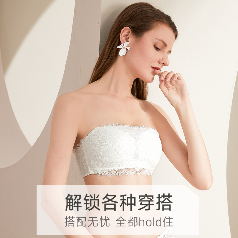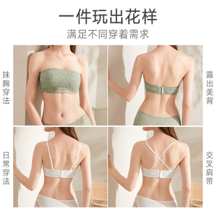 美思无肩带内衣女防滑白色抹胸内搭裹胸防走光薄款 蕾丝美背文胸