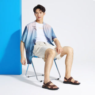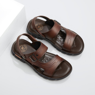凉鞋 骆驼男鞋 两穿防滑软底真皮休闲商务父亲男士 爸爸牛皮拖鞋 夏季