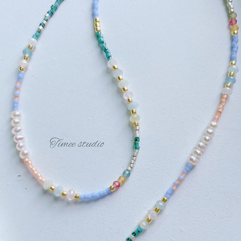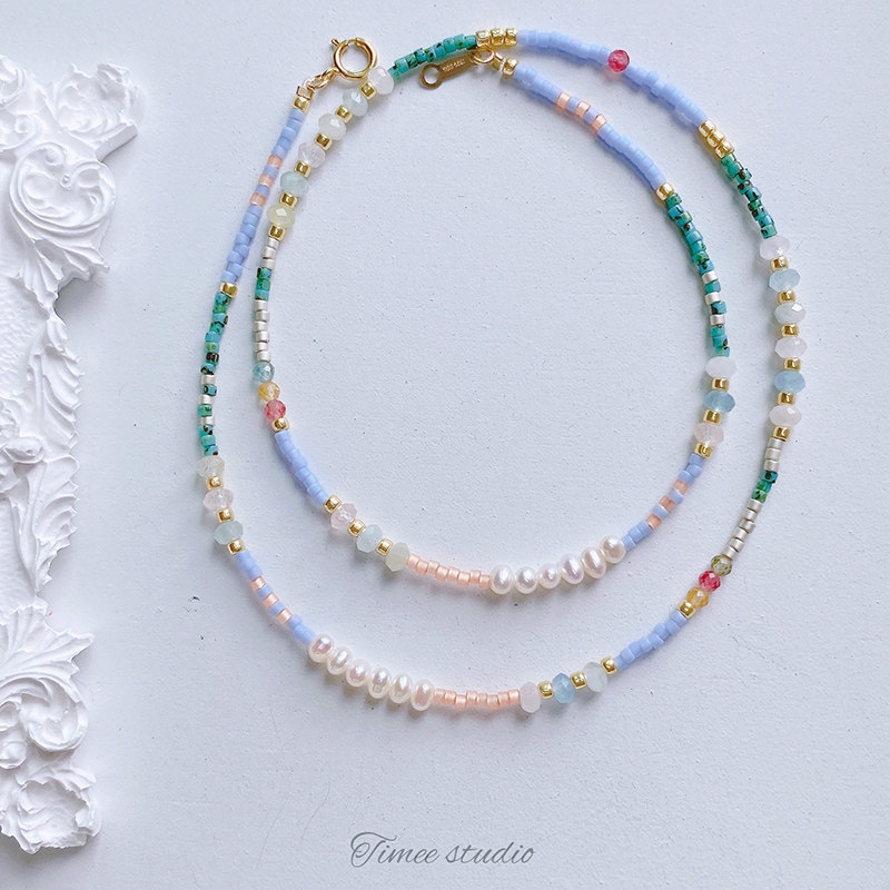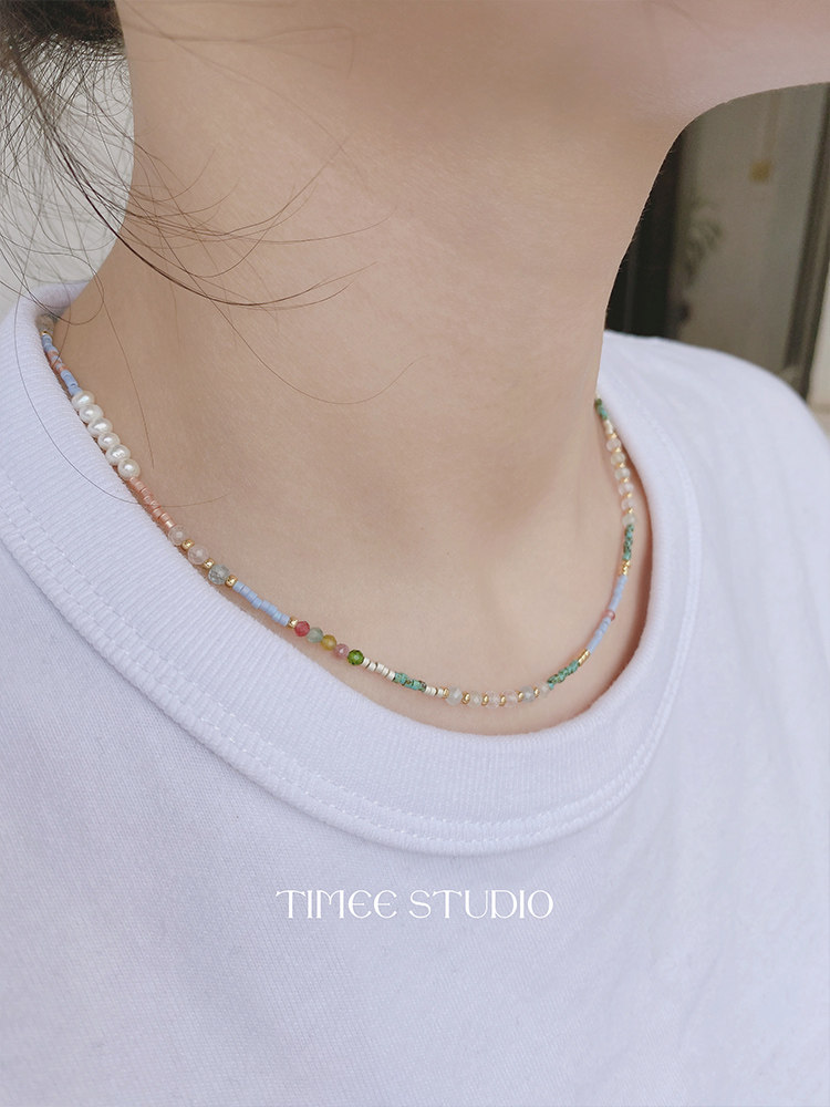 Timee Luna进口Miyuki古董珠原创设计项链女珍珠碧玺摩根石毛衣链