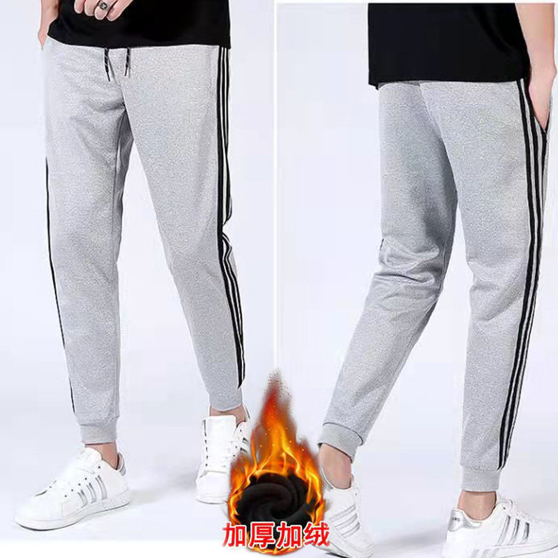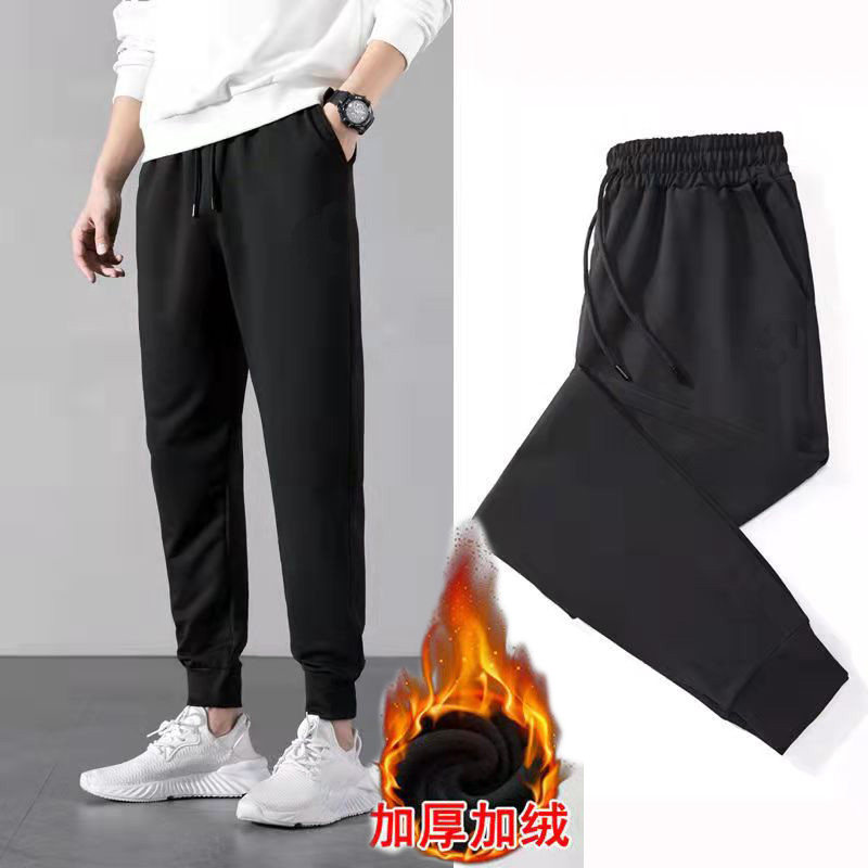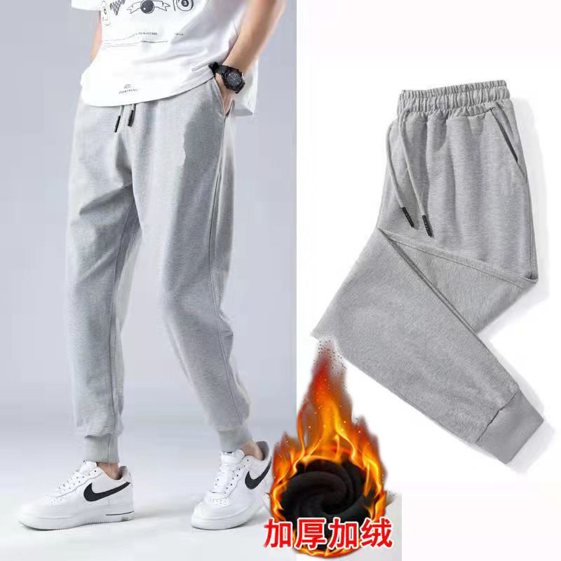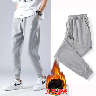 带绒外穿束脚运动绒裤 加绒加厚保暖加绒卫裤 秋冬季 休闲长裤 子男士
